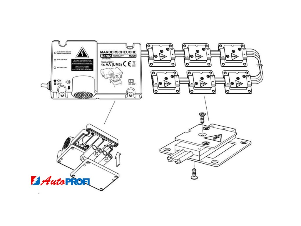 Vysokofrekvenční odpuzovač (12kHz) kun a hlodavců. Vysílá střídavé ultra-vysoké zvukové signály pro člověka téměř neslyšitelné, které jsou pro hlodavce nepříjemné.