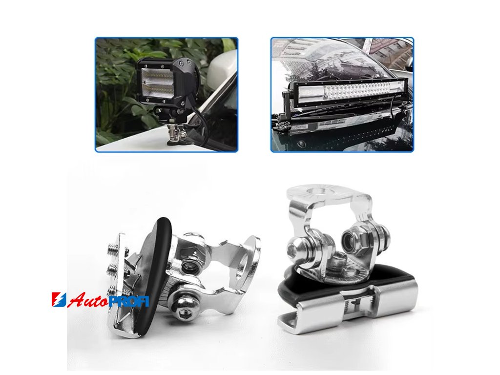 Kvalitní držák z nerezové oceli pro montáž LED světel na kapotu vozidla.