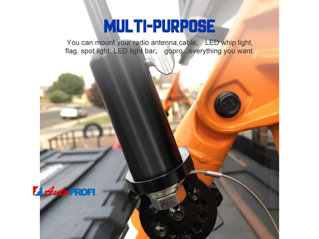 Univerzální a robustní držák určený pro uchycení LED světel, kamer či dalších doplňků na trubkové konstrukce vozidel (bull bar, rám kabiny, střešní nosič, rám vozu apod.). Díky nastavitelné svorce a výklopnému mechanismu umožňuje variabilní montáž bez nutnosti vrtání.