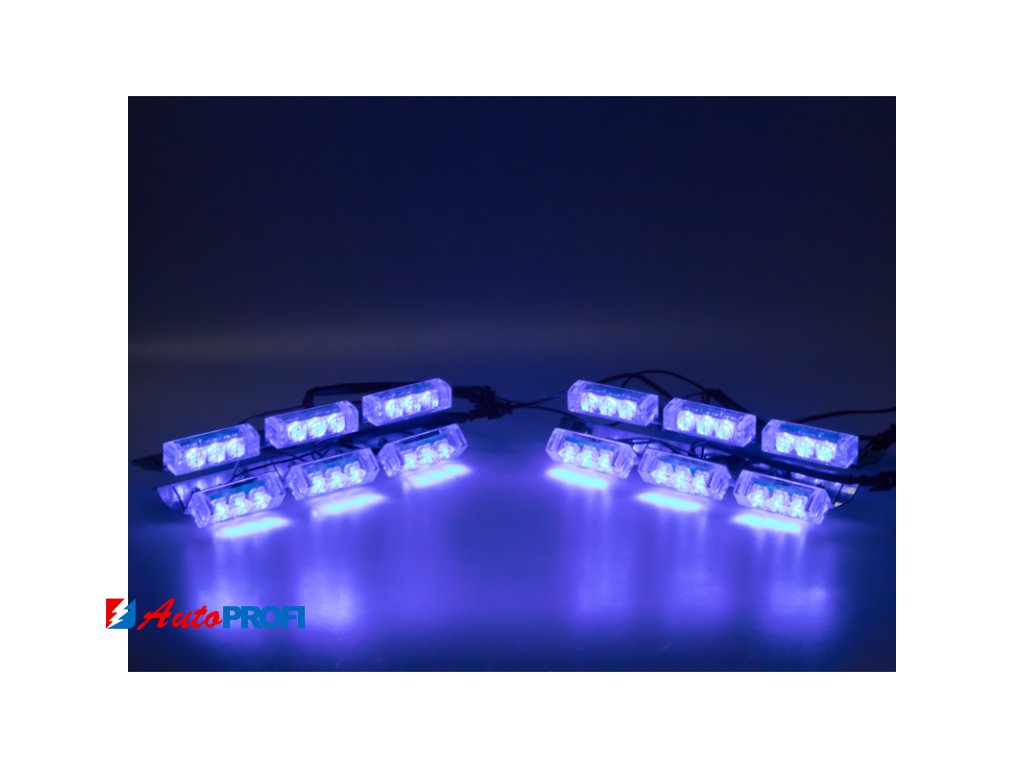 4 přídavné modré výstražné LED světla pro externí povrchovou montáž, především do přední mřížky vozidla.