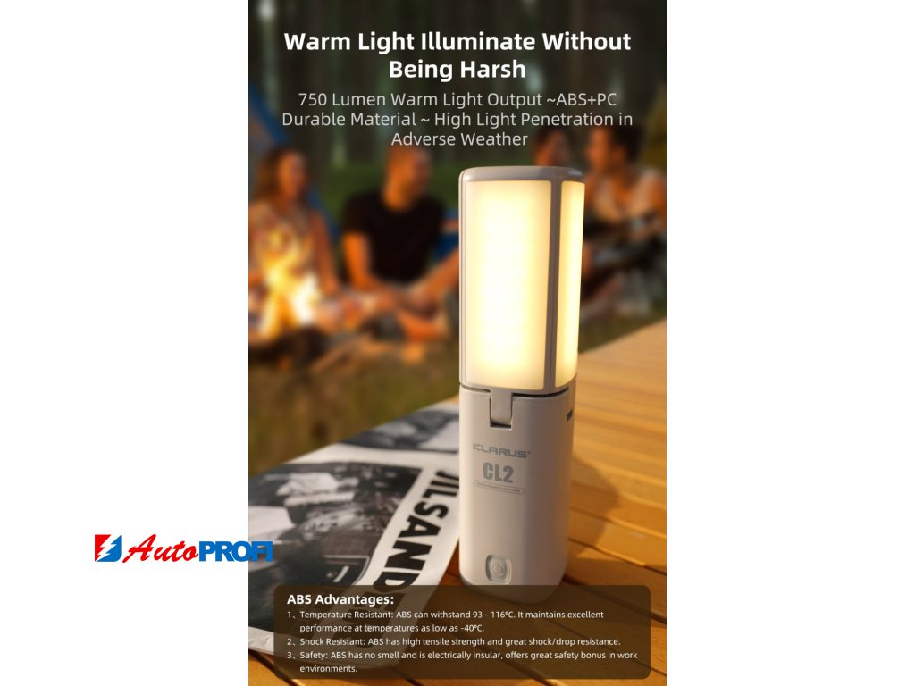 Kempingová svítilna Klarus CL2 má k dispozici 7 světelných režimů - bílé studené světlo (vysoký výkon) / bílé teplé světlo (vysoký výkon) / bílé teplé světlo (střední) / bílé teplé světlo (nízký) / režim svítilny / SOS / červené blikání. Různé teploty barev osvětlení společně s nastavitelnou úrovní jasu pomohou chránit váš zrak před dlouho trvajícím oslněním a únavou.