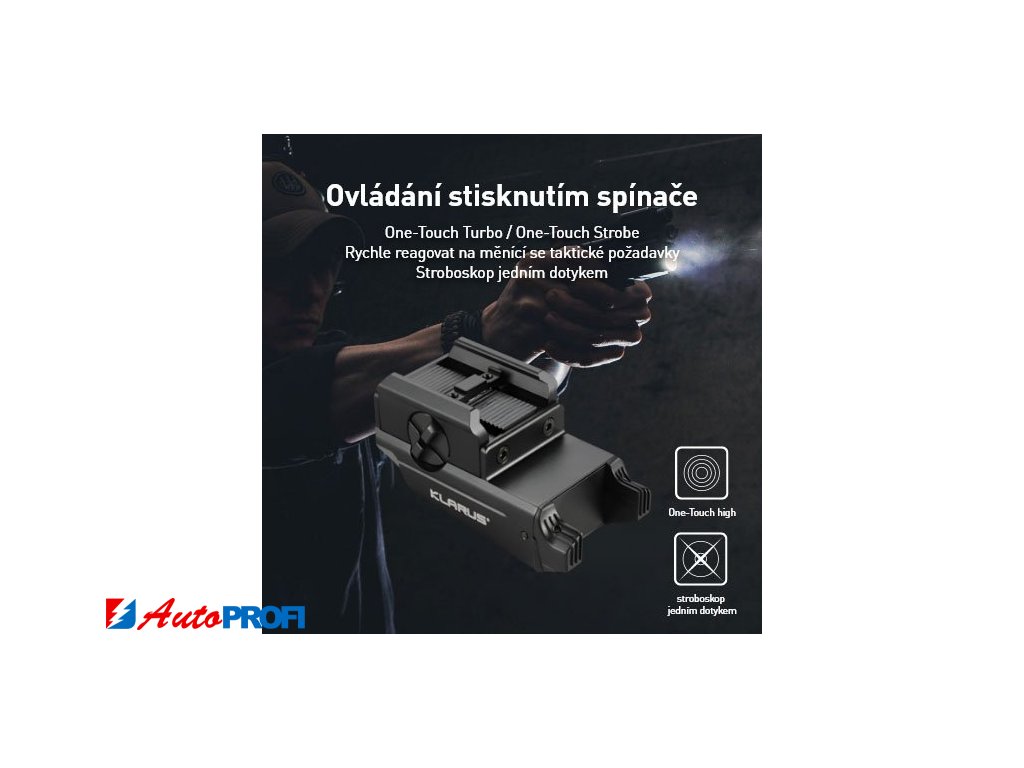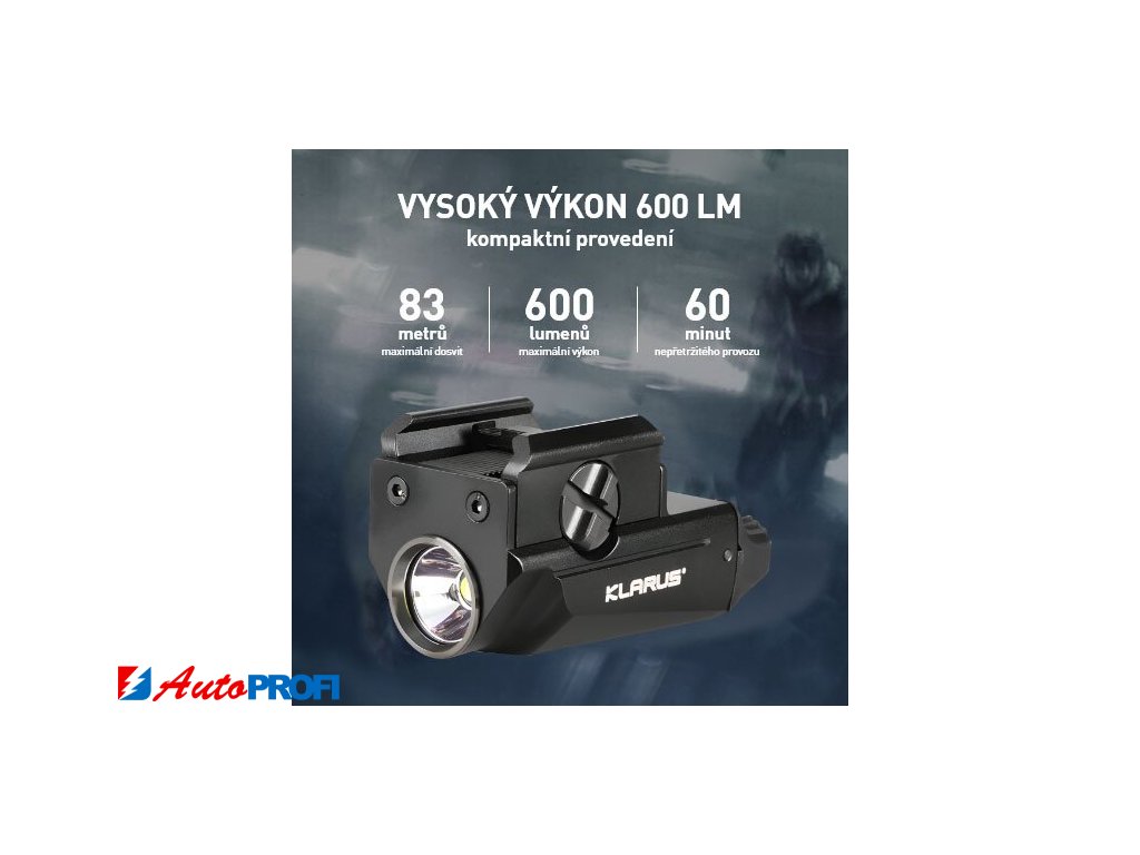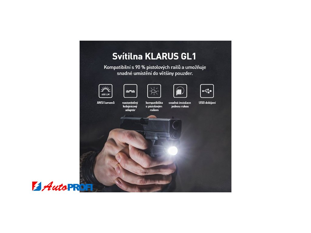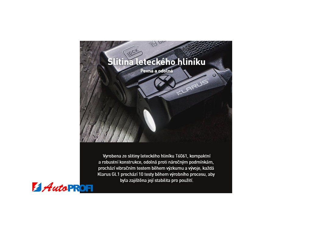 Klarus GL1 je vysoce výkonná a spolehlivá taktická svítilna na zbraň určená pro různé náročné situace, jako je zásahová akce nebo sportovní střelba. Je vybavena LED diodou s výkonem 600 lumenů a dosvitem až 83 metrů, to umožňuje jasné osvětlení cíle i v naprosté tmě. Svítilna disponuje také stroboskopickým režimem, který lze využít pro signalizaci a dezorientaci protivníka. Je vyrobena ze slitiny leteckého hliníku T6061, což jí dodává kompaktní a robustní konstrukci, která je odolná proti náročným podmínkám i při opakovaném používání.