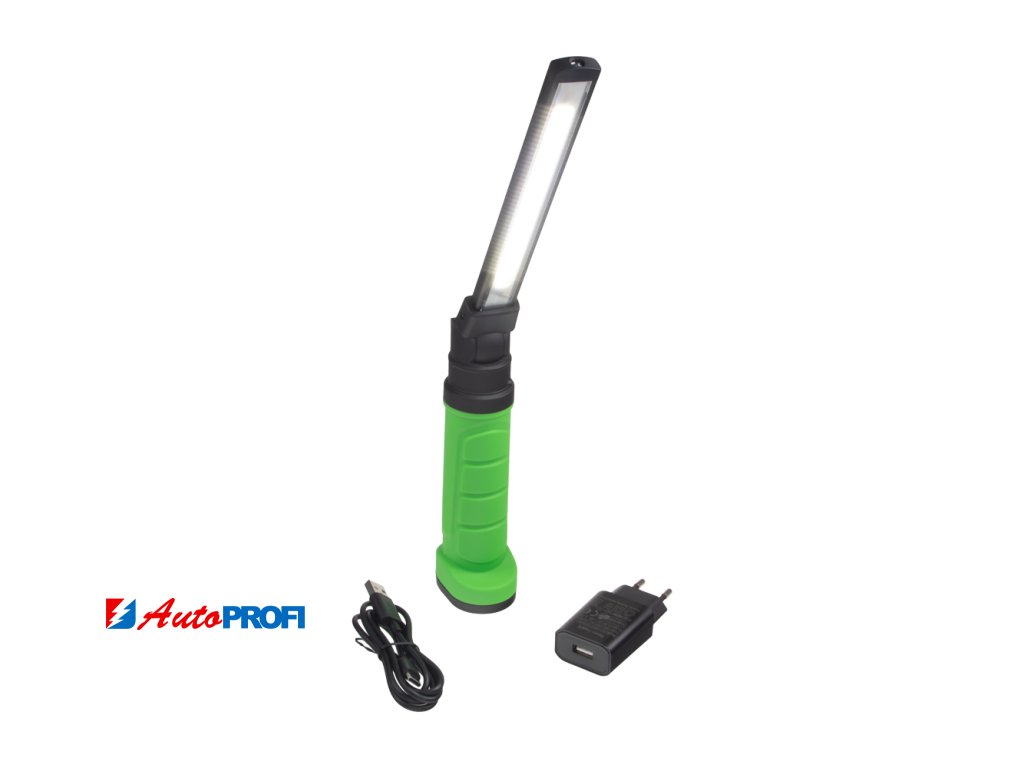 Nabíjecí profi montážní svítilna s kloubem. Jako zdroj světla má 3W COB LED modul + 1W SMD.