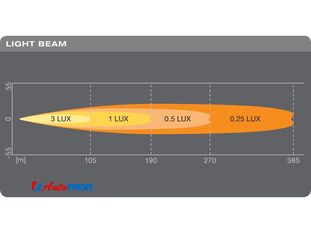• vzdálenost s intenzitou osvětlení 1lx: 190 m