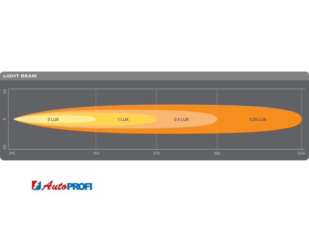 • vzdálenost s intenzitou osvětlení 1lx: 210 m