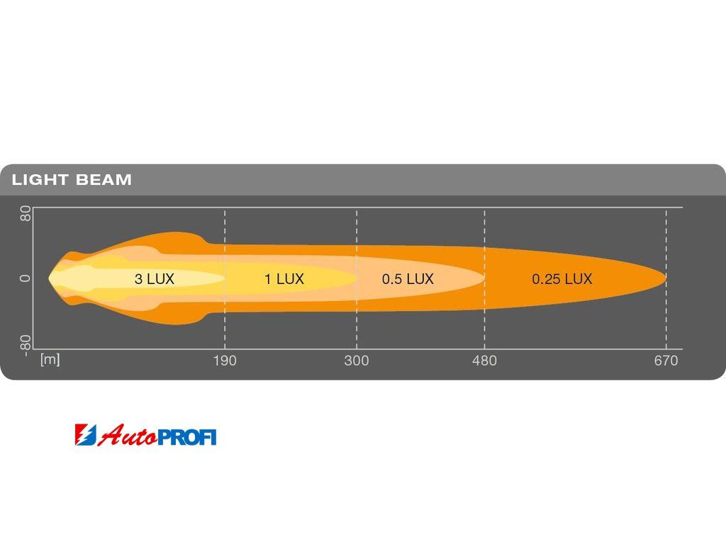 • vzdálenost s intenzitou osvětlení 1lx: 300 m