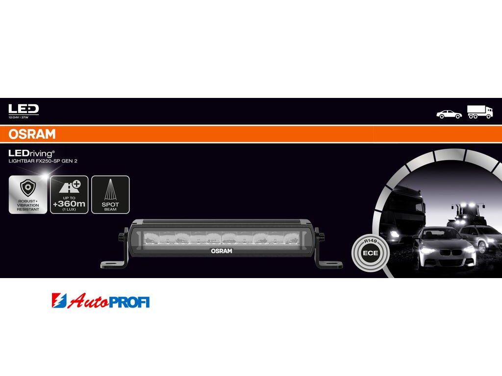 LEDriving Lightbar FX250-SP GEN 2 poskytuje dodatečné osvětlení blízkého i vzdáleného pole na tmavých silnicích se světelným tokem až 2120 lumenů.