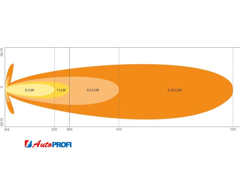 • vzdálenost s intenzitou osvětlení 1lx: 360 m