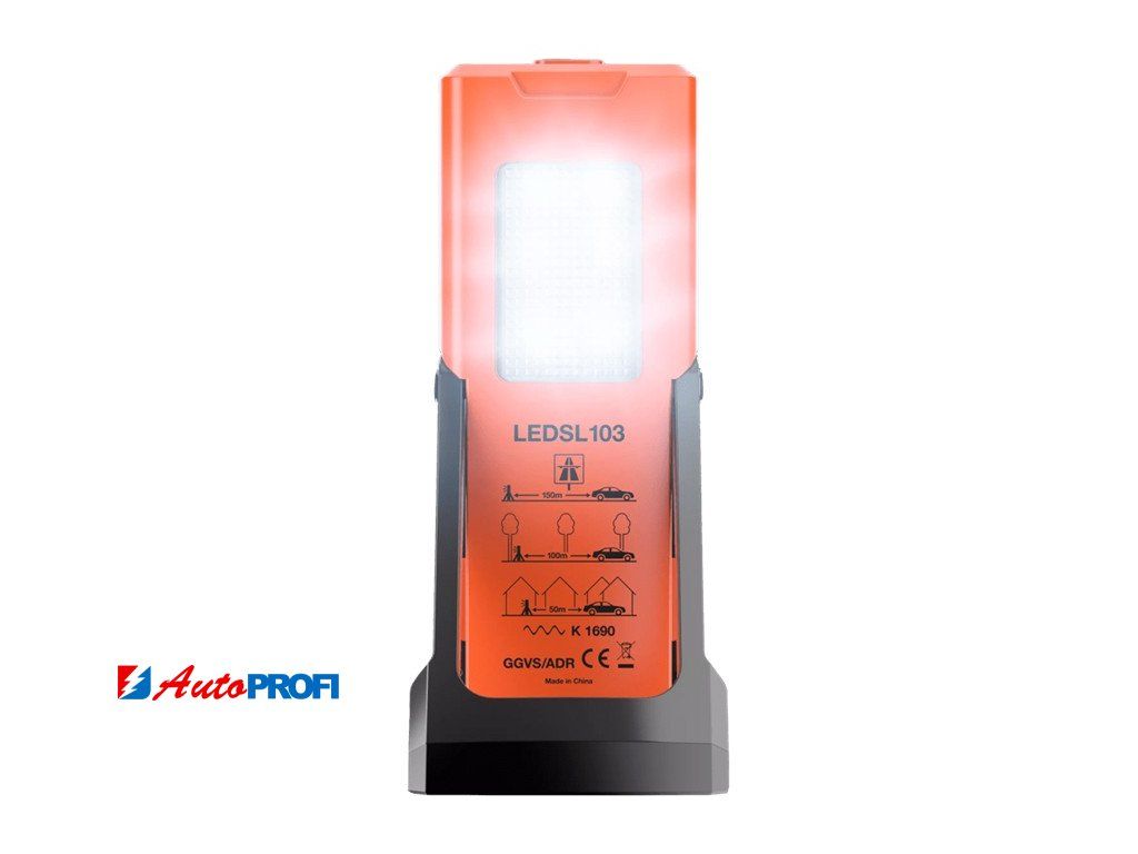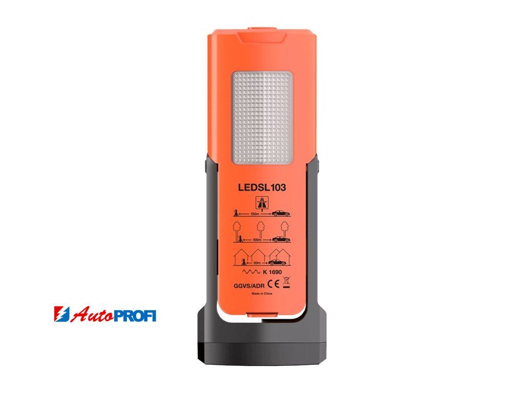 Kompaktní design vám umožňuje uložit výstražné světlo na dosah ve vozidle a v případě potřeby jej lze díky sklopným, robustním a neklouzavým nožičkám rychle a snadno nastavit přímo vedle výstražného trojúhelníku.