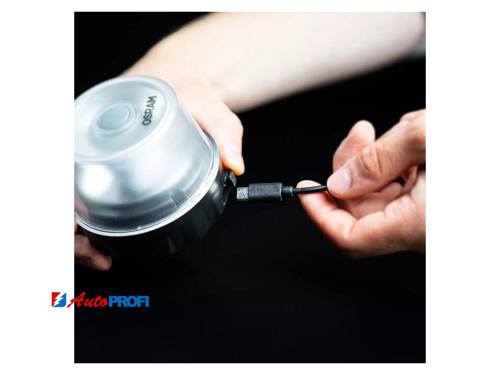 Další výhodou je, že 5200mAh Li-Ion baterii výstražného světla lze snadno dobíjet pomocí 80 cm nabíjecího kabelu USB-C, který je součástí dodávky.