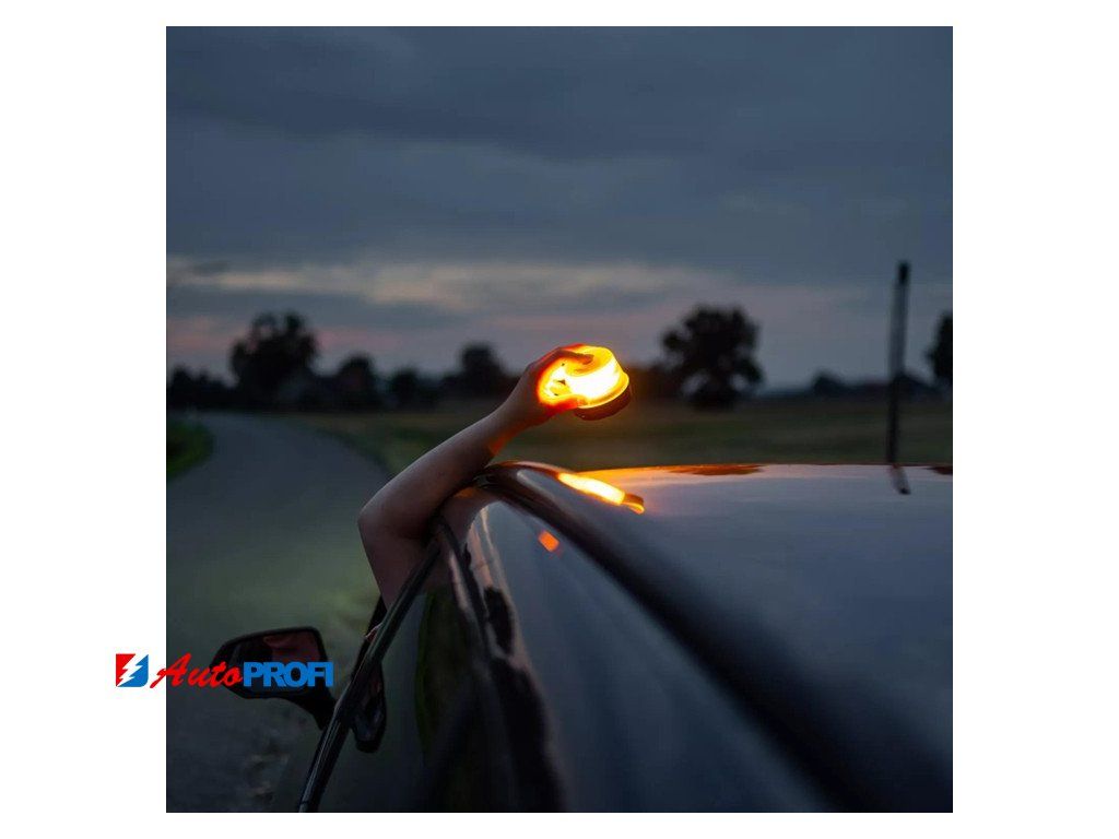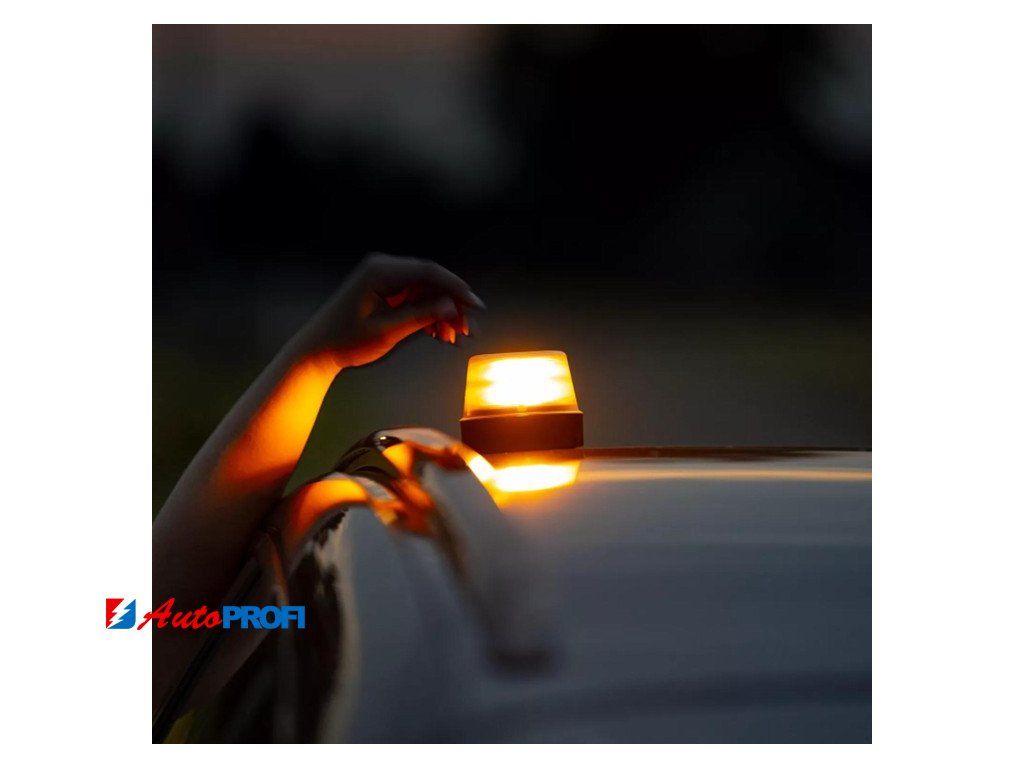 Kompaktní design umožňuje uložit výstražné světlo v dosahu ve vozidle a v případě potřeby jej lze díky magnetické funkci snadno a rychle připevnit přímo na střechu vozidla.