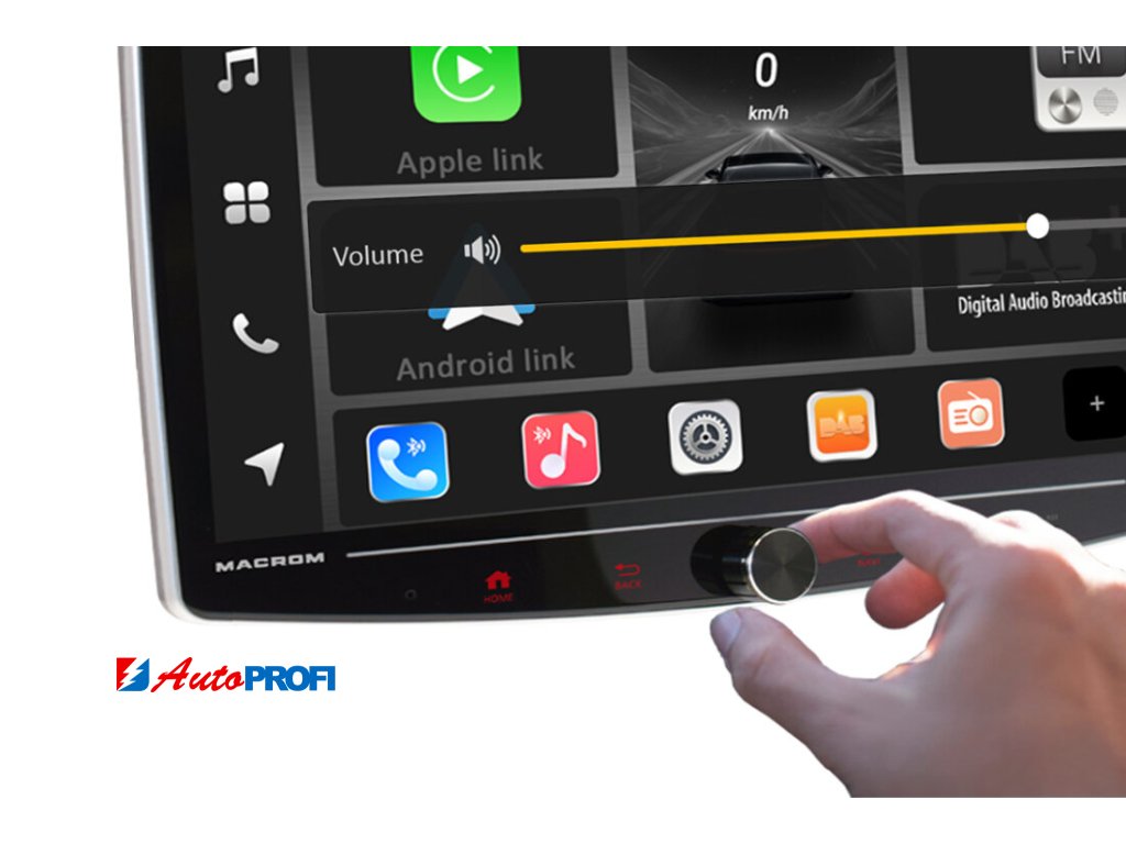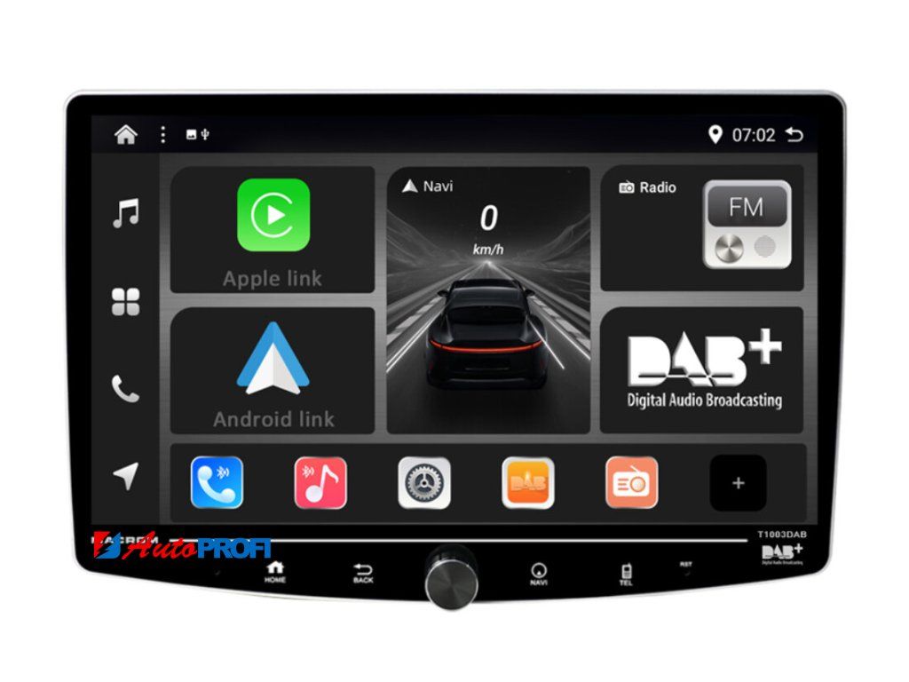 MACROM T1003DAB změní váš automobil na moderní infotainment centrum s multimediálním monitorem Elegantní 10" QLED kapacitní displej s možností natočení vám poskytne dokonale ostrý obraz, zatímco 8 jádrový procesor a Android 13 zajistí bleskovou odezvu.