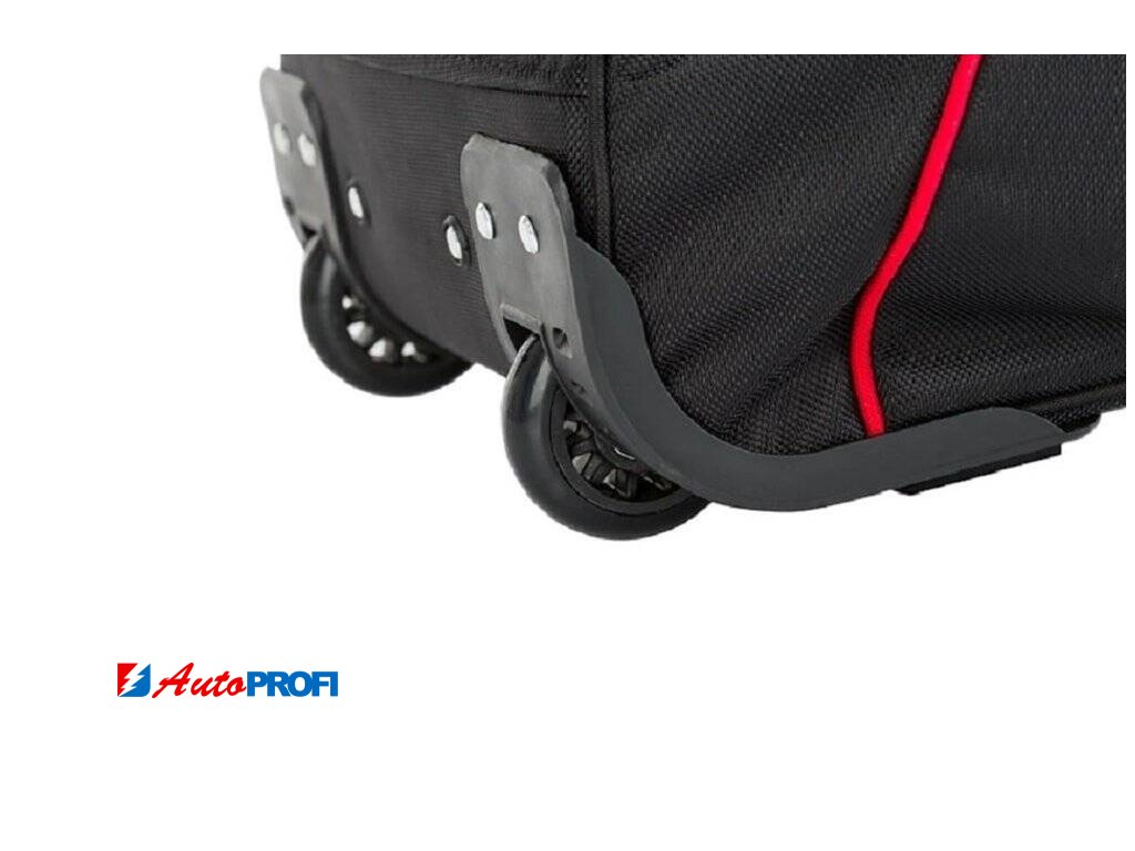 Asymetricky zkosená strana cestovních tašek KJUST zajišťuje, že taška přesně přiléhá k zadnímu sedadlu automobilu a umožňuje plně využít zavazadlový prostor.