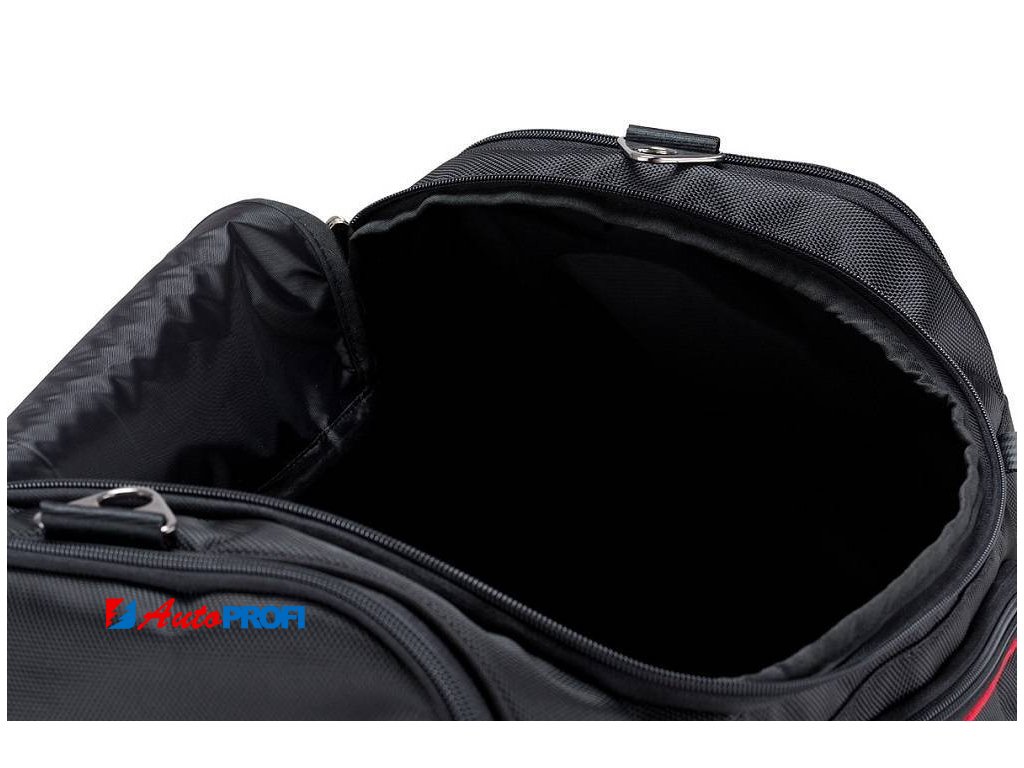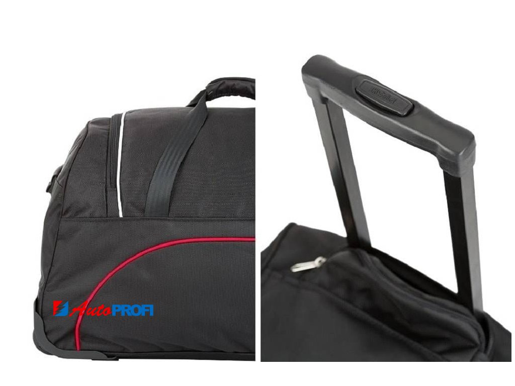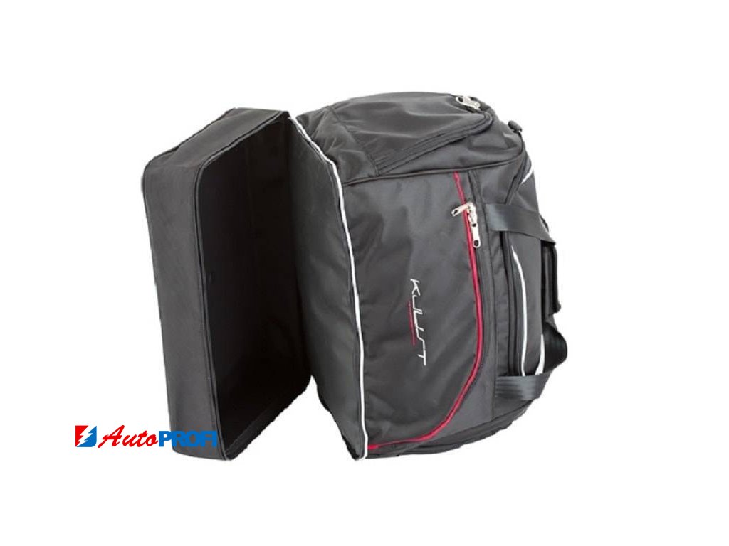 Asymetricky zkosená strana cestovních tašek KJUST zajišťuje, že taška přesně přiléhá k zadnímu sedadlu automobilu a umožňuje plně využít zavazadlový prostor.