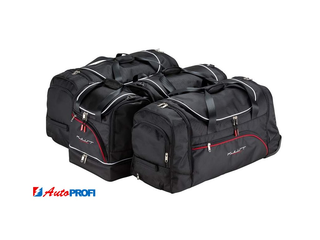 Asymetricky zkosená strana cestovních tašek KJUST zajišťuje, že taška přesně přiléhá k zadnímu sedadlu automobilu a umožňuje plně využít zavazadlový prostor.