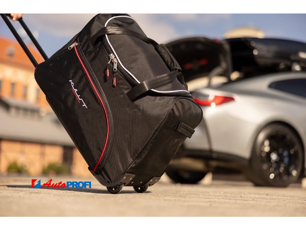 Asymetricky zkosená strana cestovních tašek KJUST zajišťuje, že taška přesně přiléhá k zadnímu sedadlu automobilu a umožňuje plně využít zavazadlový prostor.