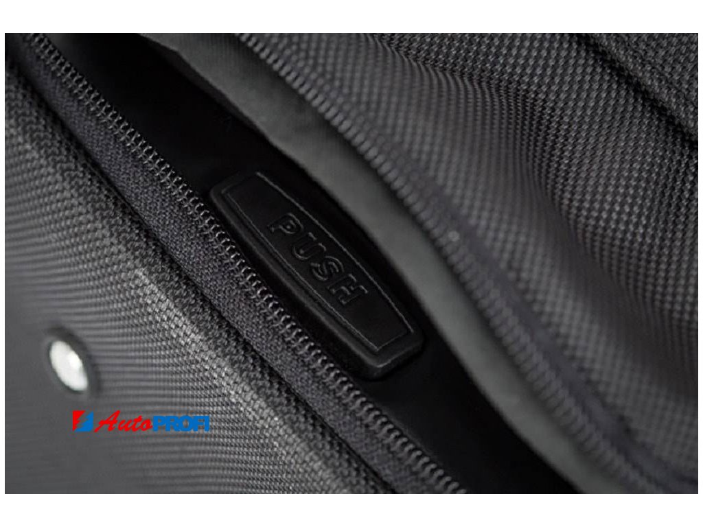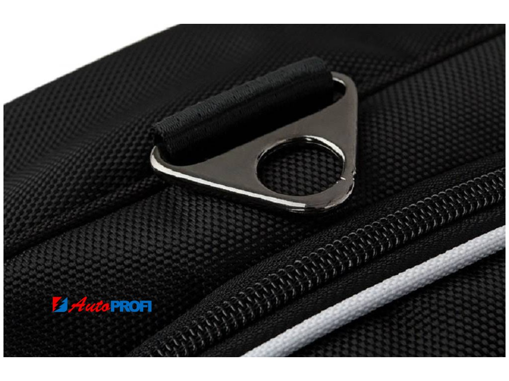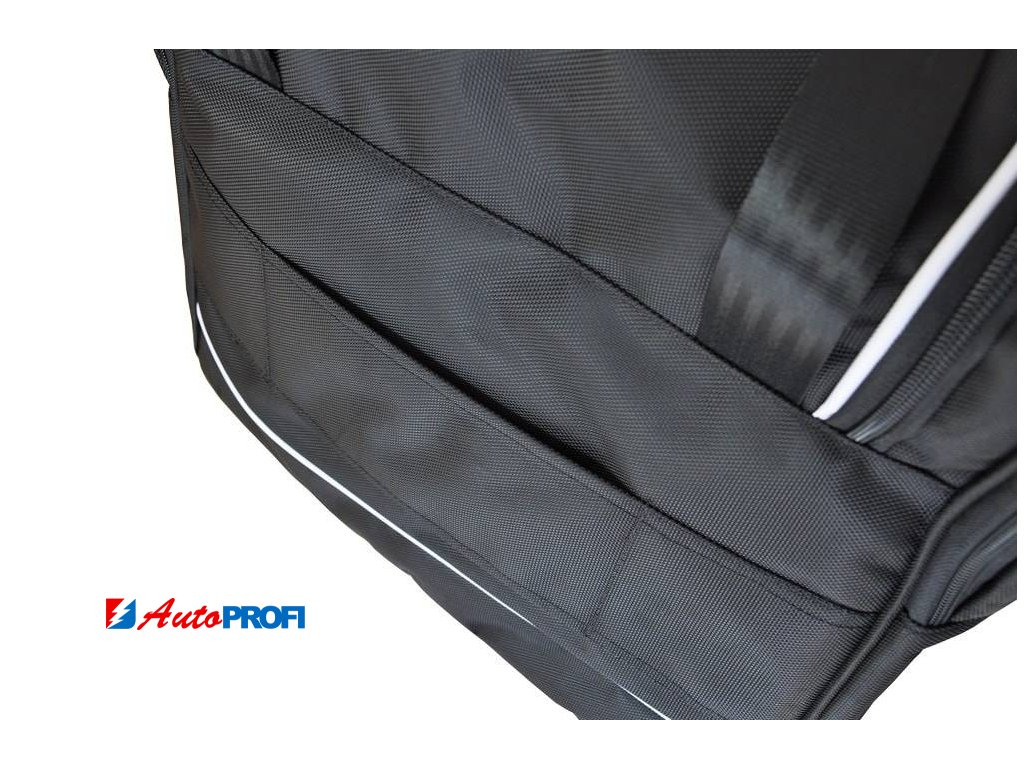 Asymetricky zkosená strana cestovních tašek KJUST zajišťuje, že taška přesně přiléhá k zadnímu sedadlu automobilu a umožňuje plně využít zavazadlový prostor.