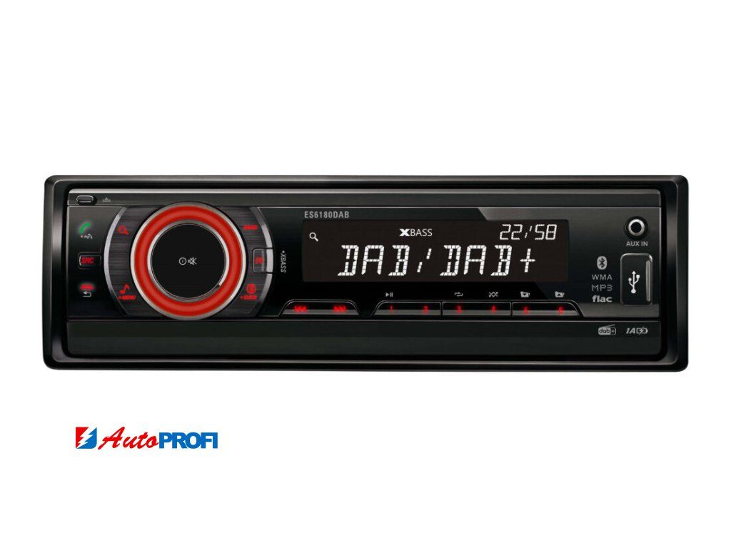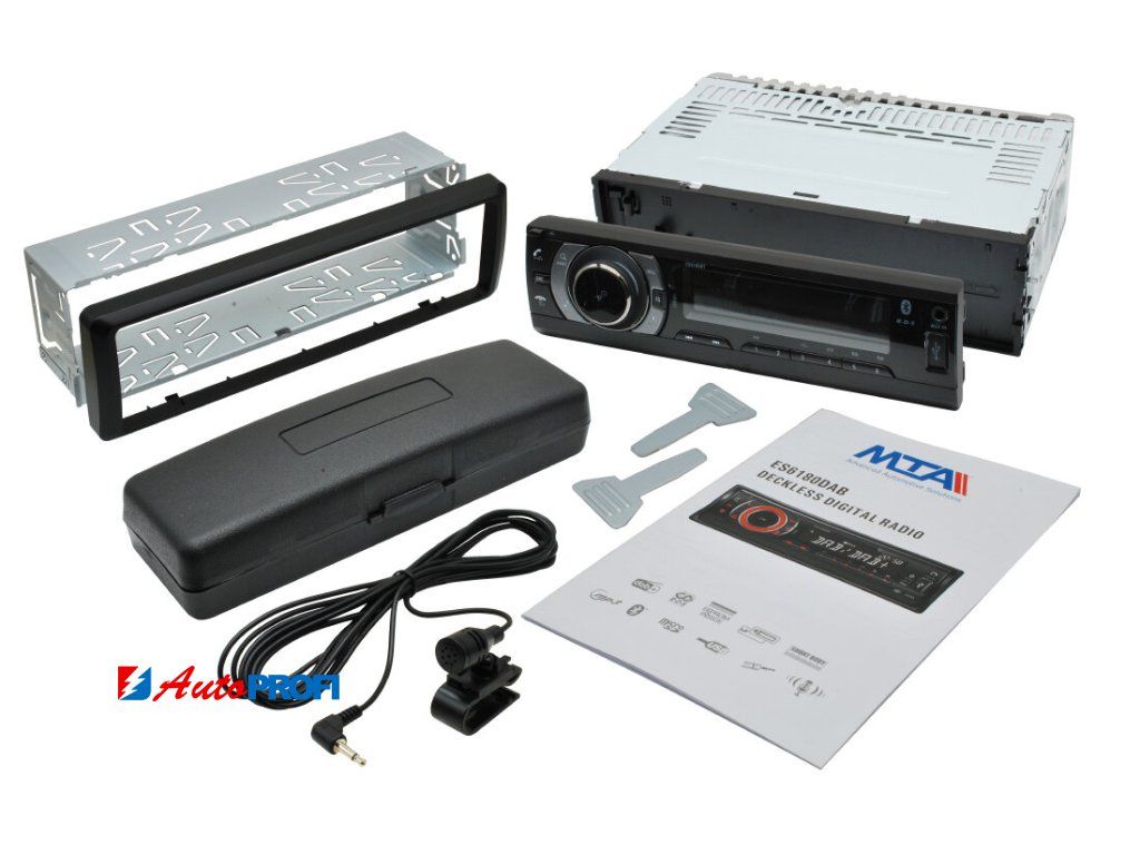 Kompaktní a výkonné autorádio MTA ES6180 DAB nabízí DAB digitální a AM/FM analogový tuner s RDS, přehrávání MP3/WMA z USB a SD karet (až 32 GB), AUX vstup, Bluetooth handsfree a bezdrátový streaming hudby. Výkon 4×22 W RMS, podpora 4/8Ω reproduktorů, nastavení zvuku (EQ, XBASS), 2× RCA výstup + výstup pro subwoofer. Odnímatelný přední panel s LCD displejem a červeným podsvícením. Připojení ISO konektorem, přiložen externí mikrofon, rámeček a montážní příslušenství.