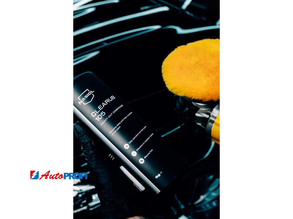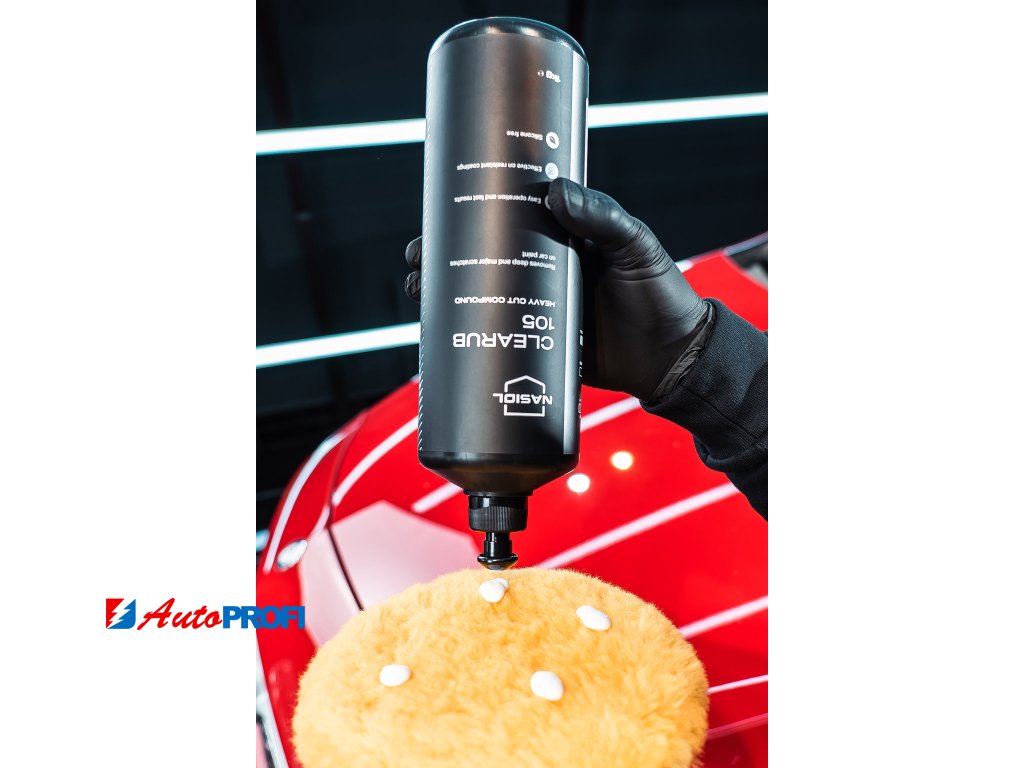 Nasiol CLEARUB 105-L silná leštící pasta navržená k odstranění hlubokých škrábanců. Připraví povrch pro nanášení nano keramické ochrany a je také ideální volbou pro dokončovací práce na odolných vrchních nátěrech a voscích. Zajistí efekt vysokého stupně lesku.