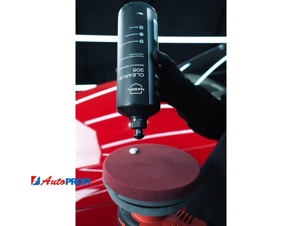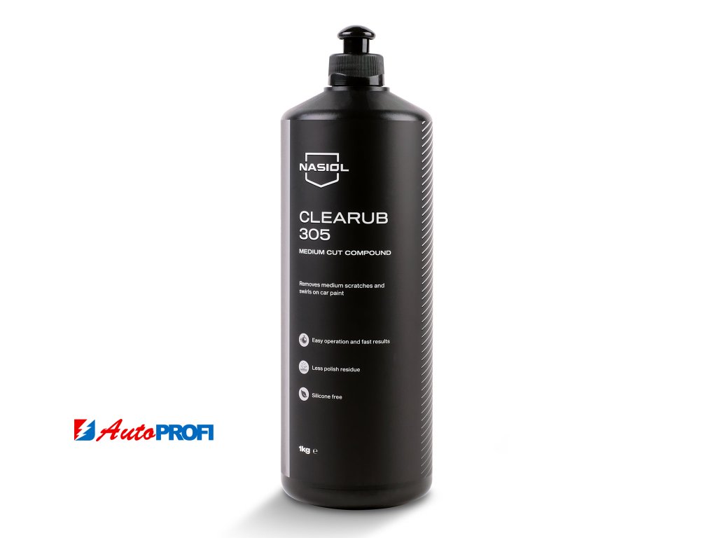 Nasiol CLEARUB 305-L středně silná leštící pasta navržená k odstranění středně hlubokých škrábanců. Připraví povrch pro nanášení nano keramické ochrany a je také ideální volbou pro dokončovací práce na odolných vrchních nátěrech a voscích. Zajistí efekt vysokého stupně lesku.
