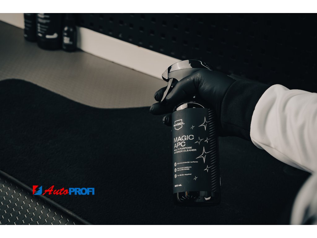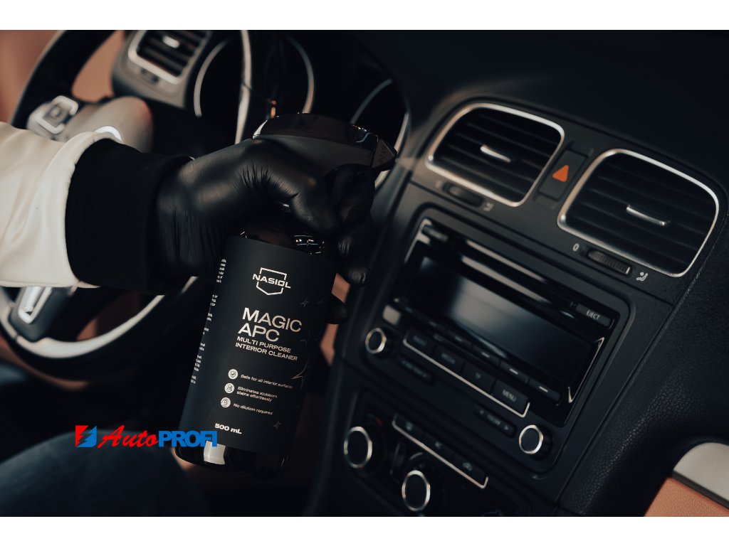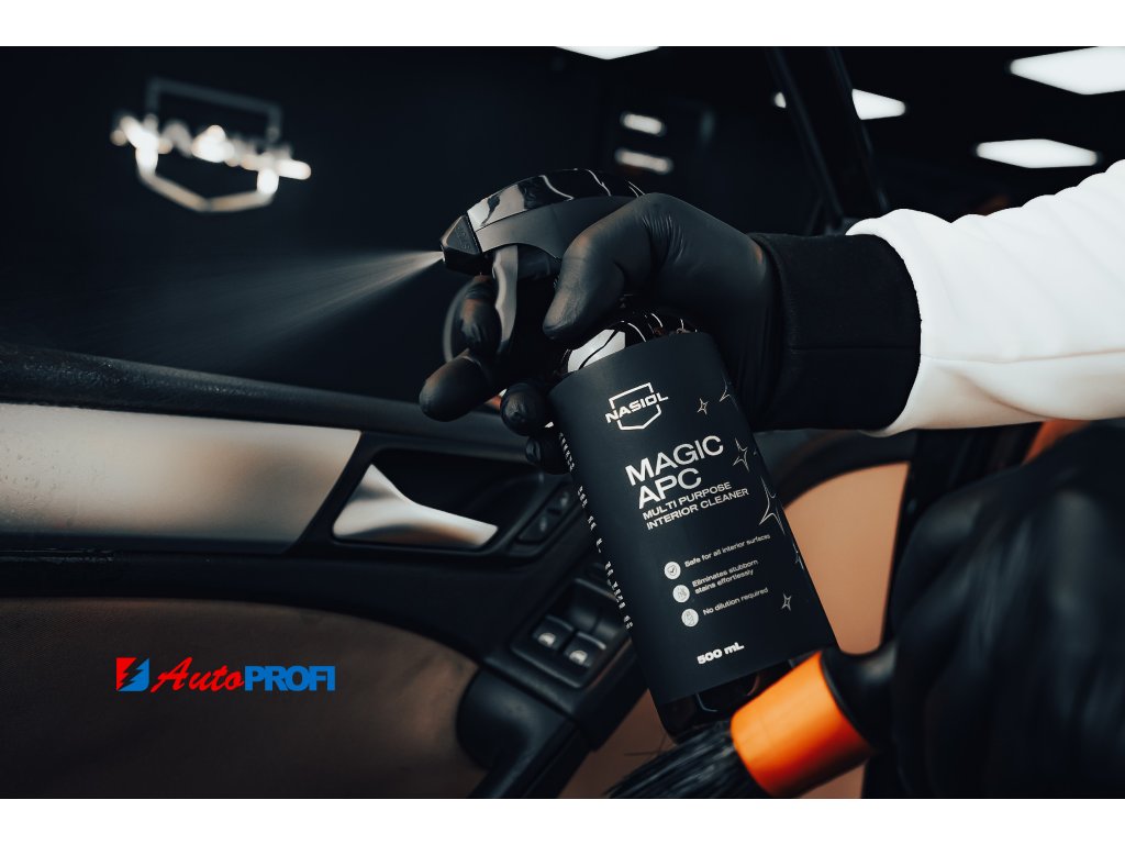 Nasiol Magic APC je univerzální čistič, který důkladně odstraňuje různé nečistoty z interiéru vozidla. Efektivní čistí povrchy jako čalounění, autosedačky, koberce, palubní desku, vinyl, plastové díly, dveřní panely, sedadla motocyklů a další.