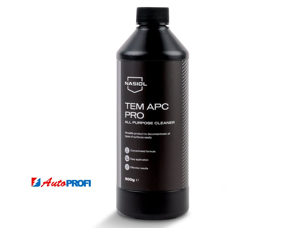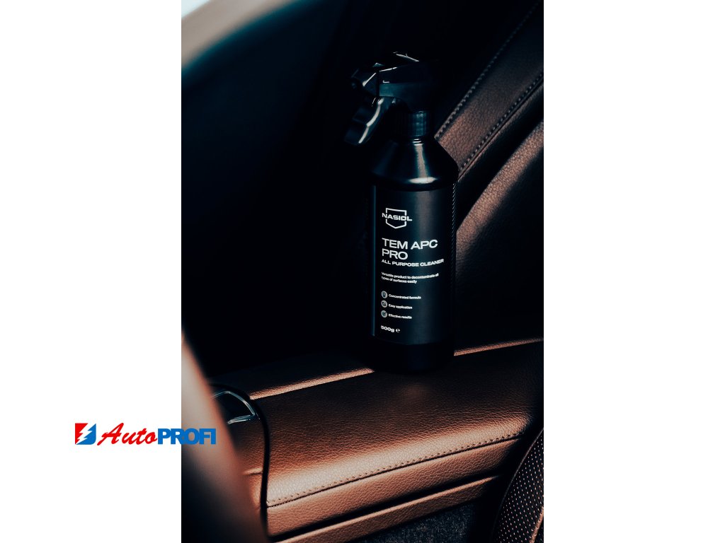 Nasiol TEM APC PRO univerzální čistič určený k odstraňování nečistot a skvrn z povrchů sedadel, podlah, plastových částí a střech interiéru vozidel. Odolné skvrny, které nelze odstranit běžnými čisticími prostředky vyžadují koncentrát, který je dostatečně silný na to, aby skvrny odstranil bez poškození povrchu nebo okolních oblastí.
