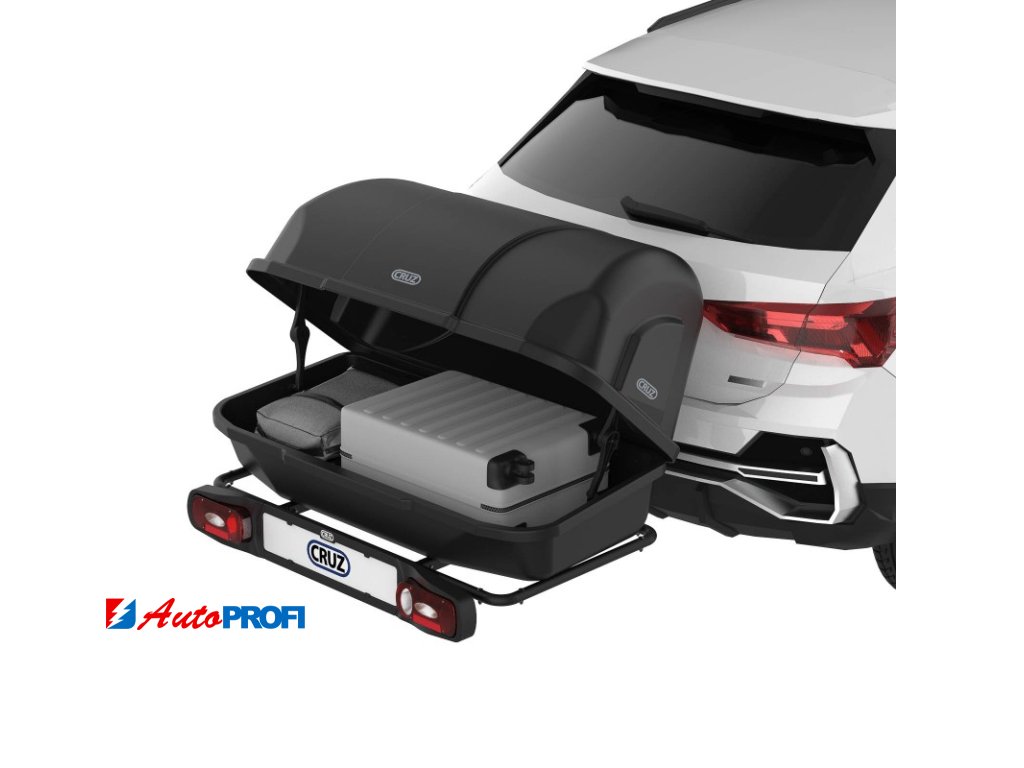 Nosič zavazadel Cruz Apex - box, na tažné zařízení Velkoobjemový box Apex včetně platformy TailoZadní box kombinuje velkoobjemovou praktičnost s elegantním designem, který svým černým povrchem odpovídá trendu současných vozidel.