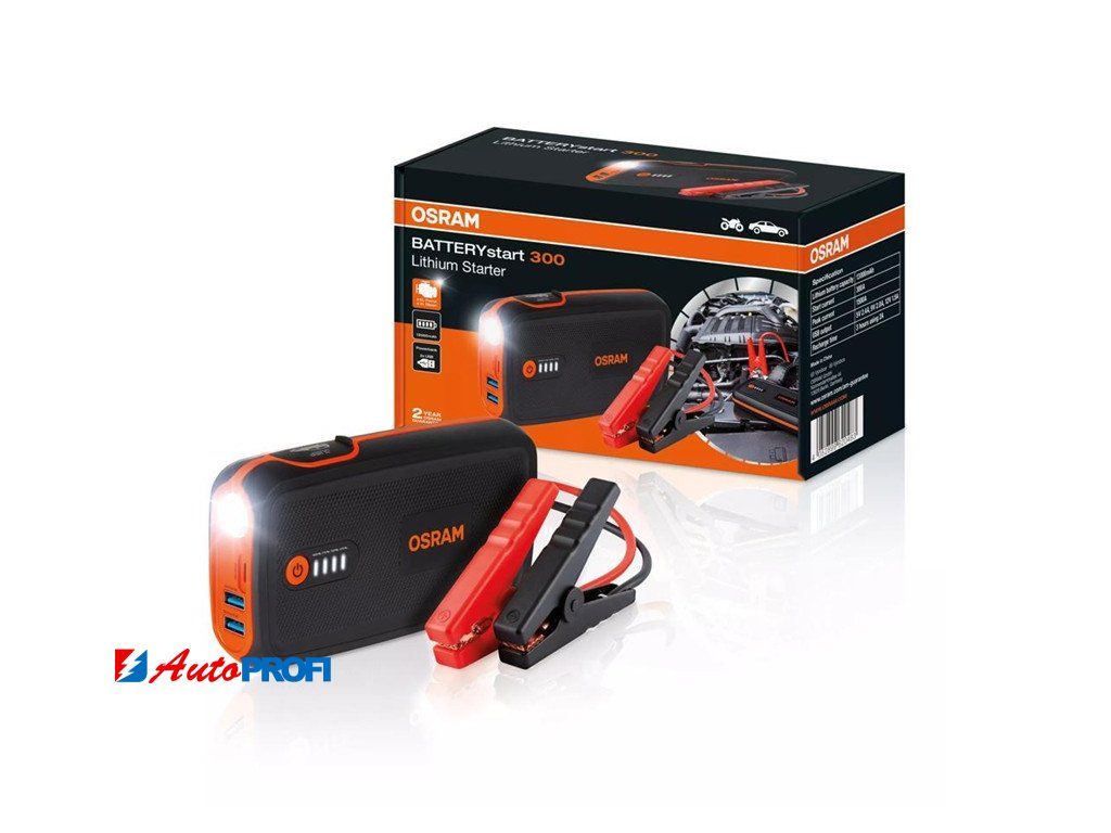 Kompaktní a výkonný lithiový startér s funkcí powerbanky. Kompaktní startér OSRAM BATTERYstart300 pro lithium-kobaltové LiCoO2 pro malá a střední vozidla s 12 V až do 6 l benzínových a 3 l dieslových motorů.