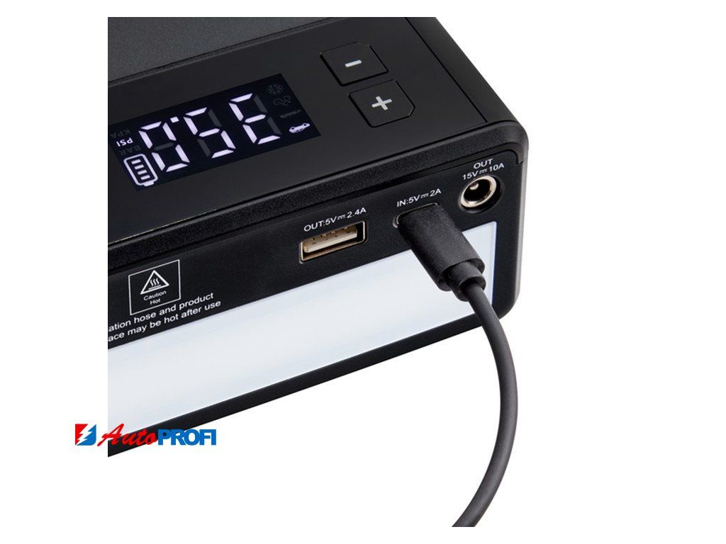 Potřebujete mít pneumatiky pod kontrolou? Vestavěný kompresor pro huštění pneumatik je vybaven digitálním tlakoměrem a funkcí automatického zastavení pro snadné a přesné huštění.