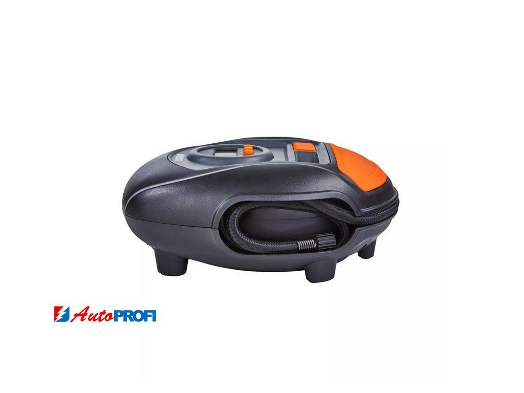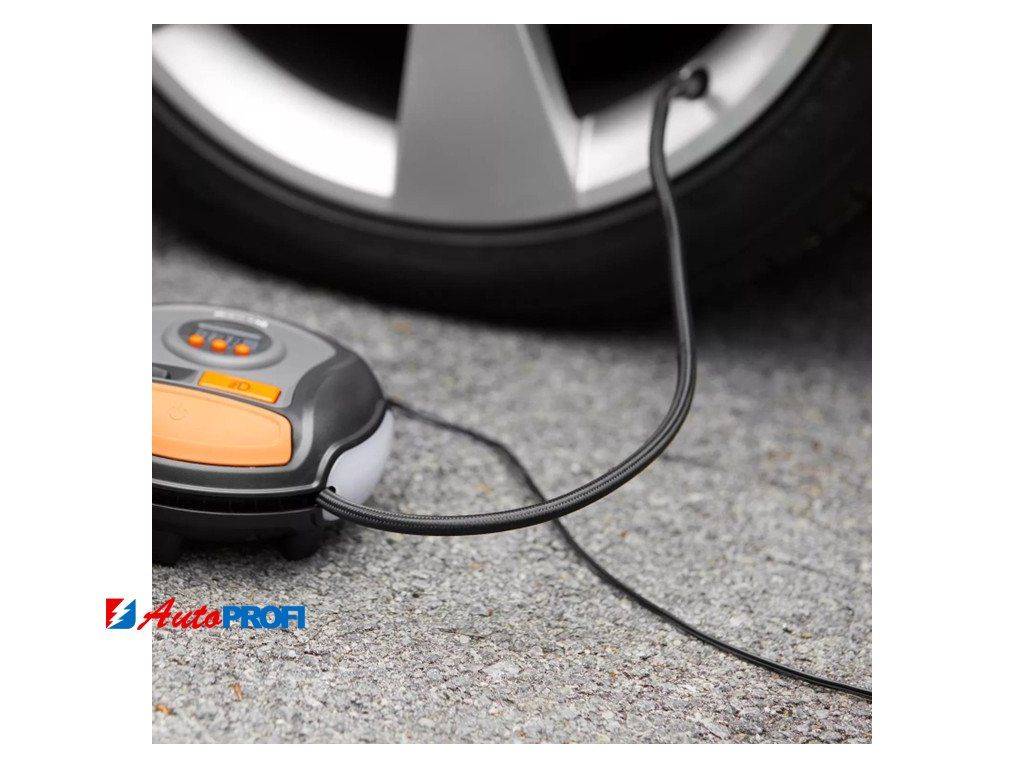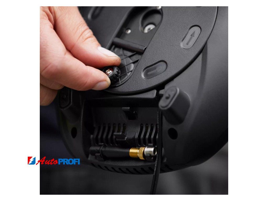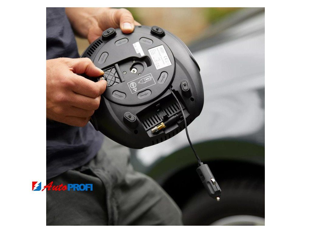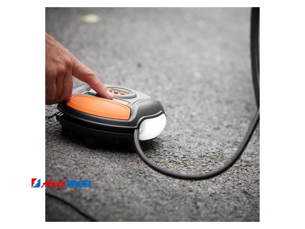 Plochý design kompresoru TyreInflate 450 zajišťuje stabilitu během používání. Navíjecí napájecí kabel usnadňuje sbalení kompresoru.