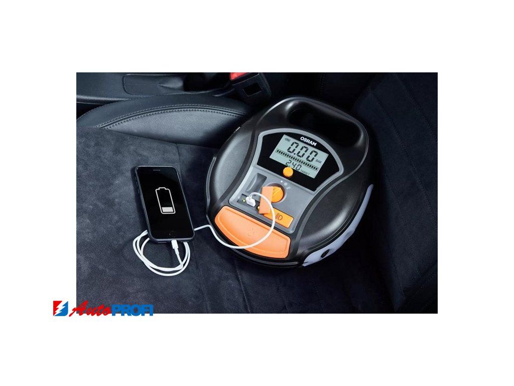 Díky funkci powerbanky lze zařízení OSRAM TYREinflate 6000 používat také jako nabíječku elektronických zařízení, např.: mobilního telefonu.