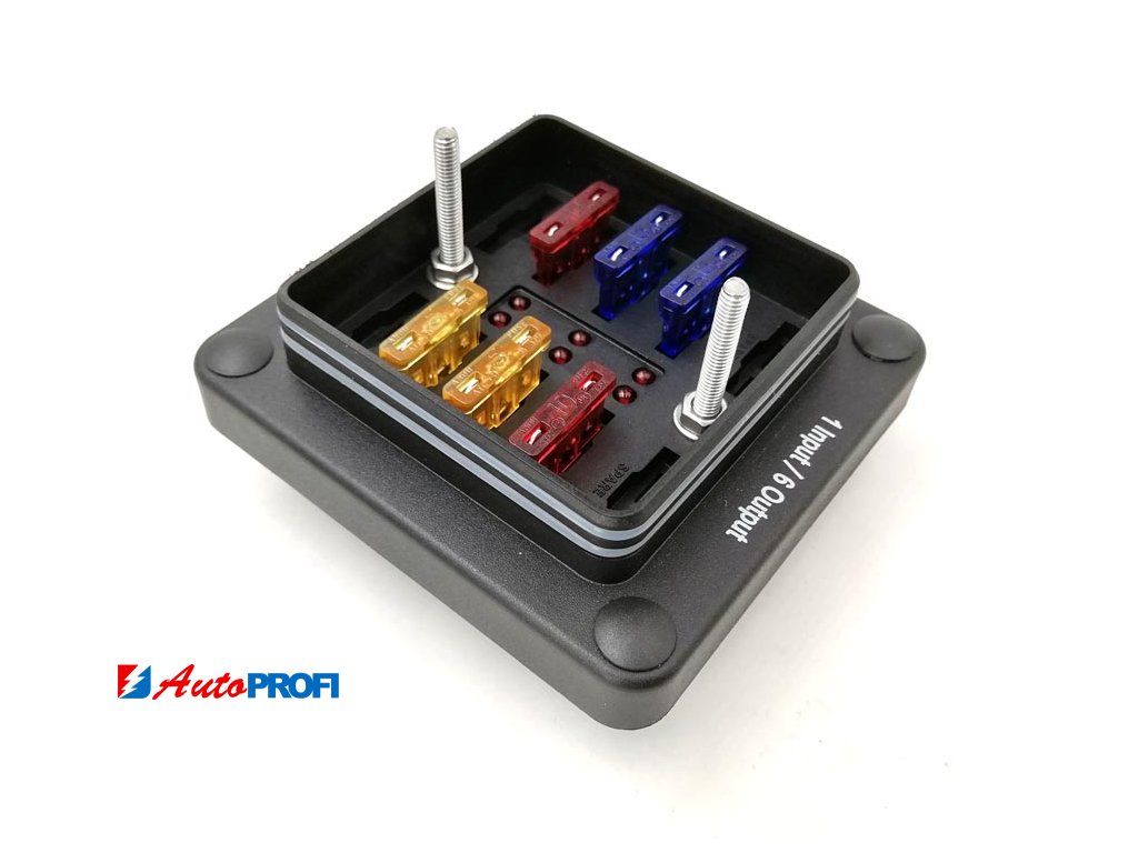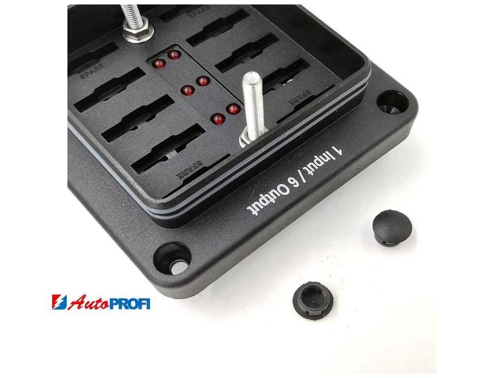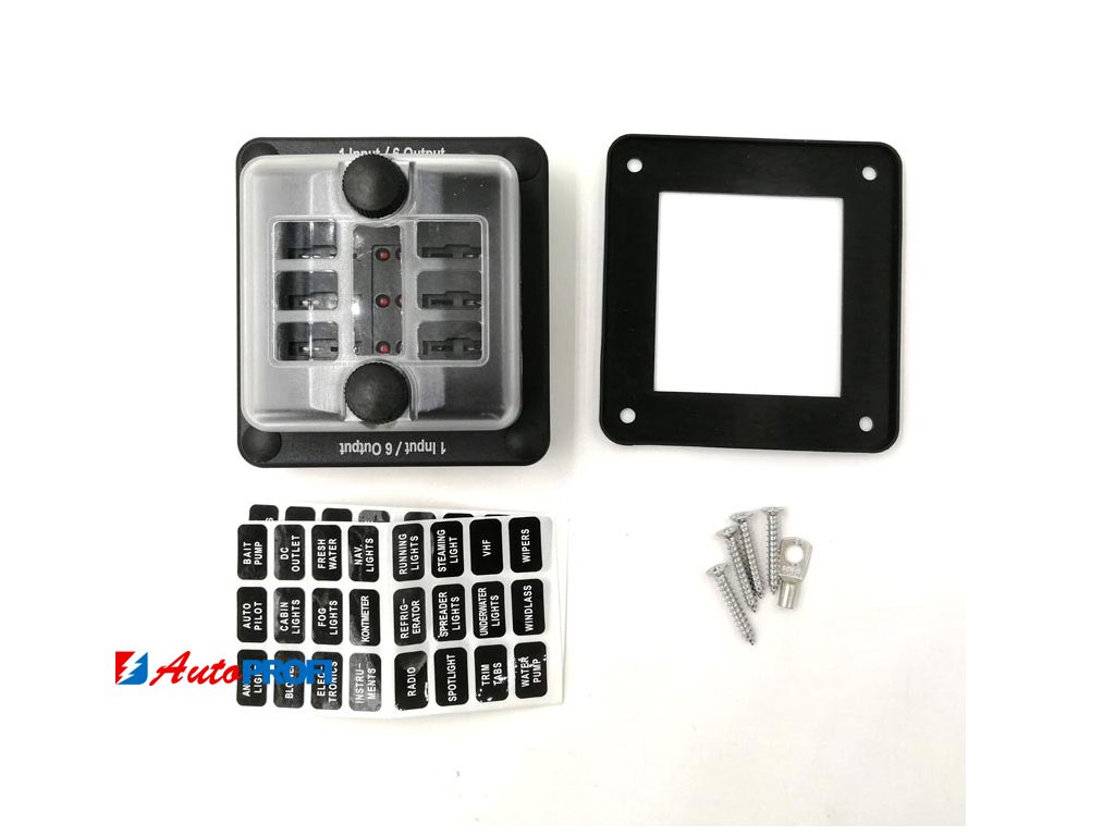 Sdružené voděodolné pojistkové pouzdro pro 6 MIDI plochých pojistek.