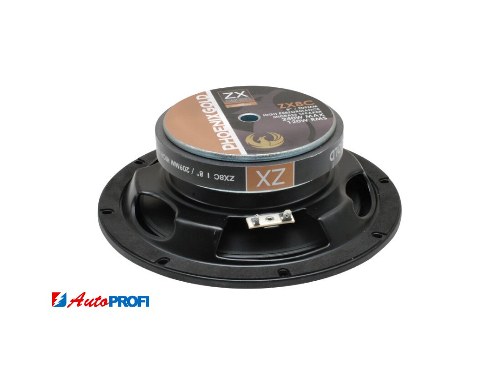 ZX8C 8″ (200mm) středobasový woofer spojuje odolnost s vynikajícím zvukovým výkonem. Díky kompaktní montážní hloubce pouhých 60 mm se hodí do široké škály vozidel. Prodává se v páru a je ideální pro použití v 2pásmových i 3pásmových systémech.