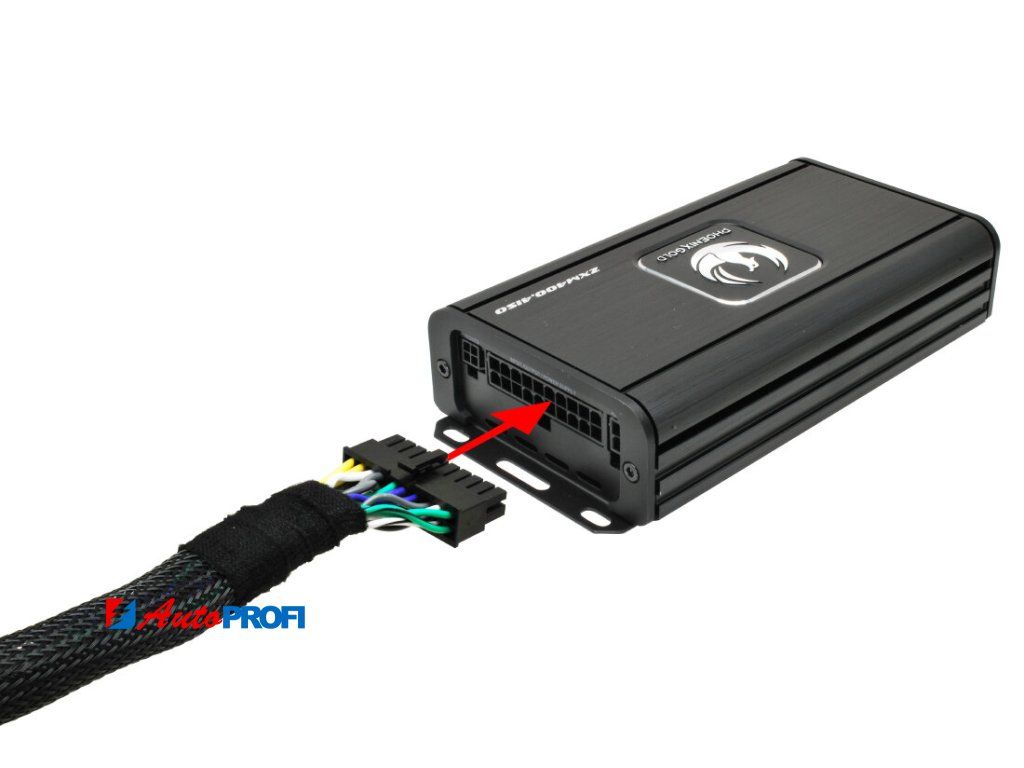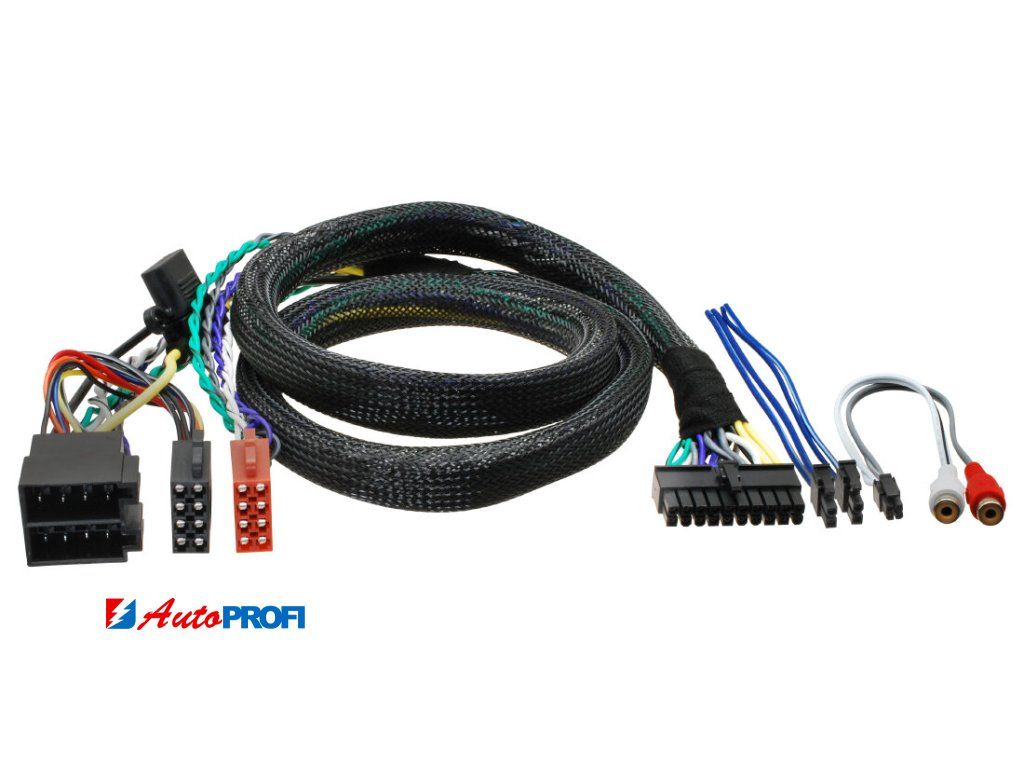 Miniaturní 4kanálový zesilovač s kabelovým svazkem zakončeným ISO konektory pro snadnou instalaci Plug & Play