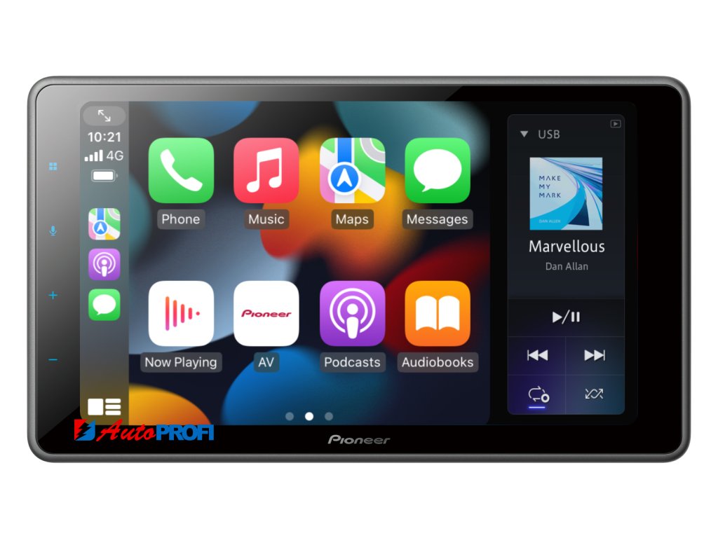2-DIN Modulární multimediální jednotka s 9" WSVGA kapacitní vícedotykovou obrazovkou, bezdrátovým připojením pro AppleCarPlay a Android Auto. Pro použití určitých funkcí umožňuje "Pioneer Split Screen Mode" dynamickou změnu velikosti uživatelského rozhraní Apple CarPlay nebo Android Auto.