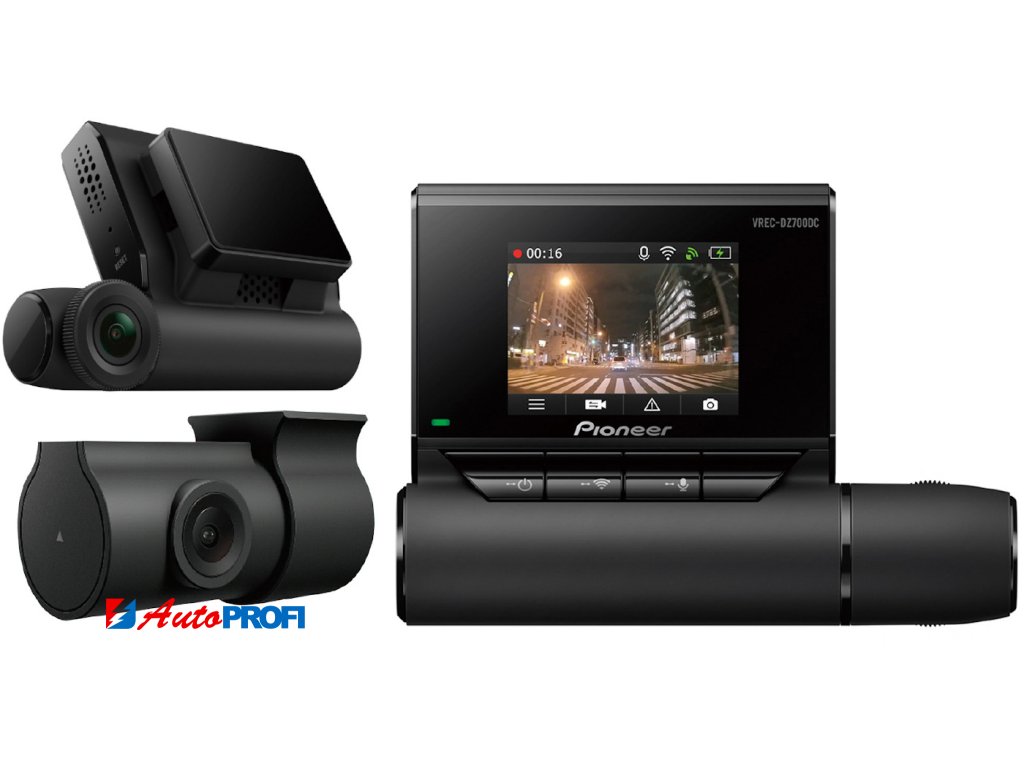 Pioneer VREC-DZ700DC se skládá z přední širokoúhlé záznamové kamery s 2 "displejem a nahráváním ve vysokém rozlišení Full HD, která se instaluje na vnitřní stranu čelního skla a kompaktní zadní kamery, která se instaluje na vnitřní stranu zadního okna vozidla. Úhel záběru 160 ° zaznamená i údaje, které jiné záznamové kamery nezaznamenají.