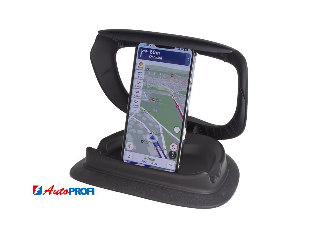 Univerzální držák do auta slouží k uchycení mobilního telefonu nebo navigace či tabletu na palubní desku vozu.
