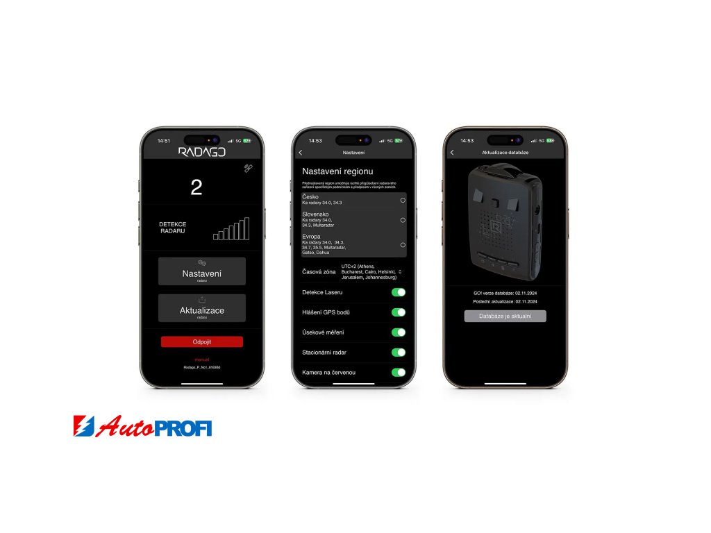 Mobilní Aplikace RADAGO GO! je dalším prvkem, který činí z tohoto produktu unikátní detektor na trhu. Díky aplikaci lze nejen snadno provádět aktualizace, ale také přenášet poplachy přímo do navigačního systému.