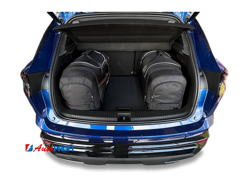 Asymetricky zkosená strana cestovních tašek KJUST zajišťuje, že taška přesně přiléhá k zadnímu sedadlu automobilu a umožňuje plně využít zavazadlový prostor.