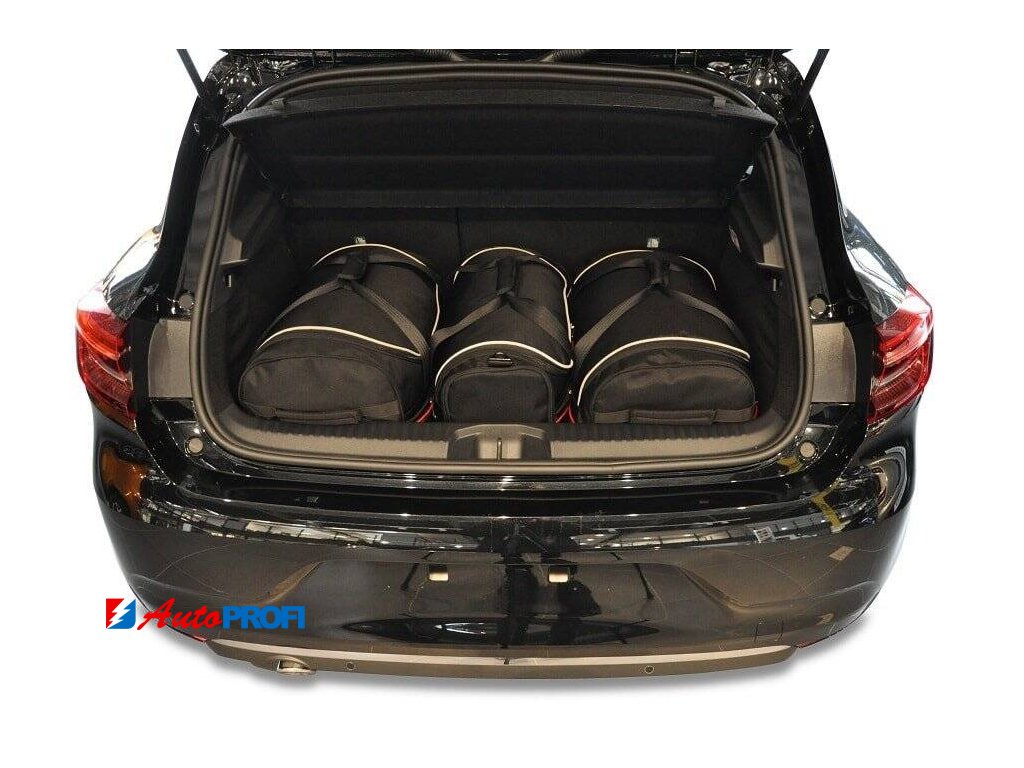 Asymetricky zkosená strana cestovních tašek KJUST zajišťuje, že taška přesně přiléhá k zadnímu sedadlu automobilu a umožňuje plně využít zavazadlový prostor.