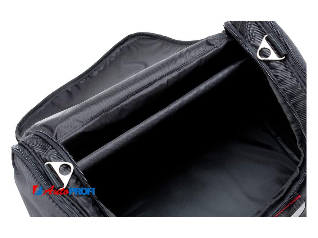 Asymetricky zkosená strana cestovních tašek KJUST zajišťuje, že taška přesně přiléhá k zadnímu sedadlu automobilu a umožňuje plně využít zavazadlový prostor.