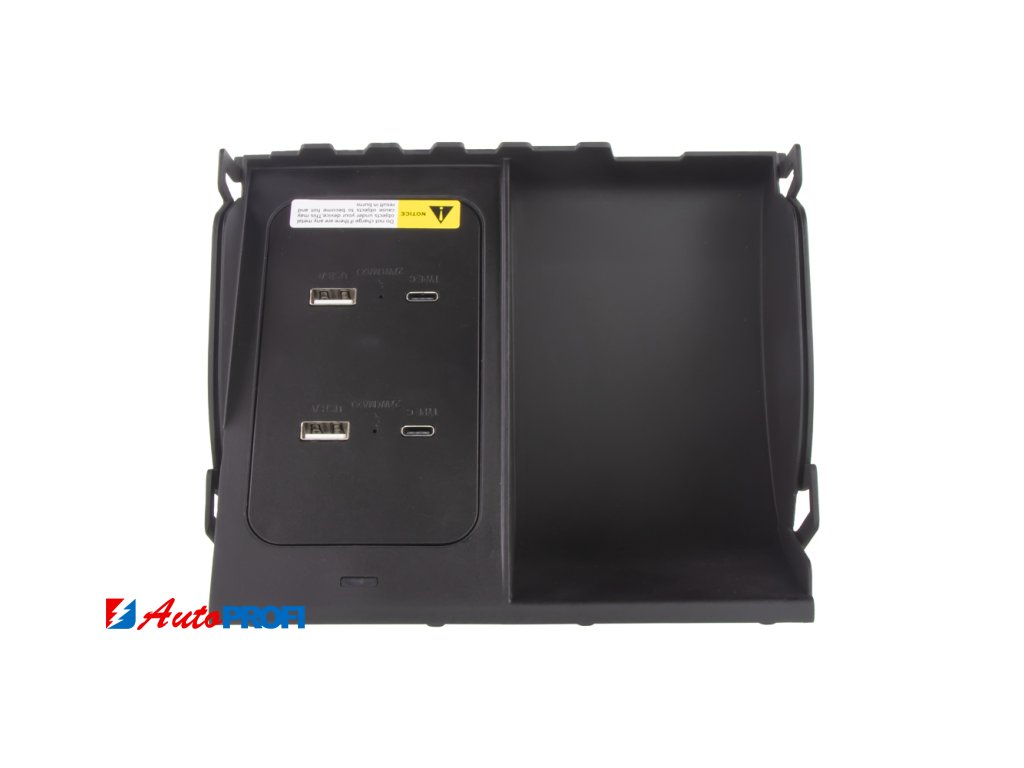 Odkládací přihrádka s 4x USB konektorem pro nabíjení telefonů a jiných zařízení.