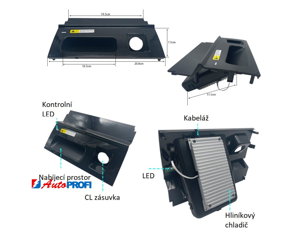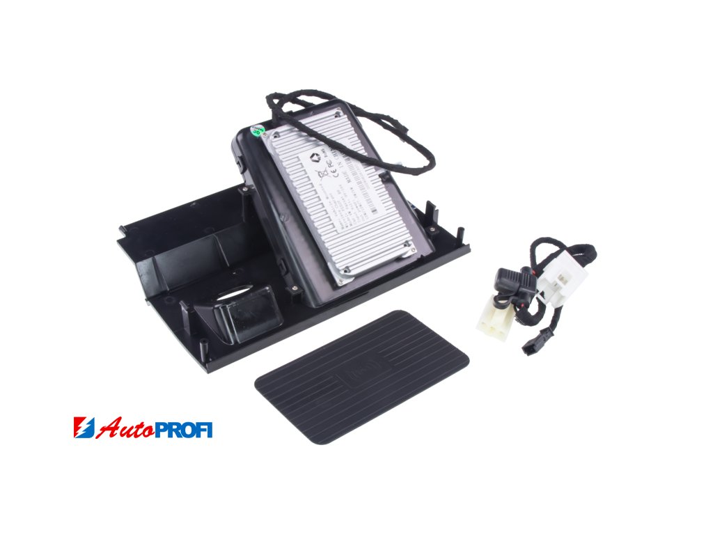 Nabíjecí přihrádka pro bezdrátové dobíjení mobilních telefonů prostřednictvím technologie Qi.