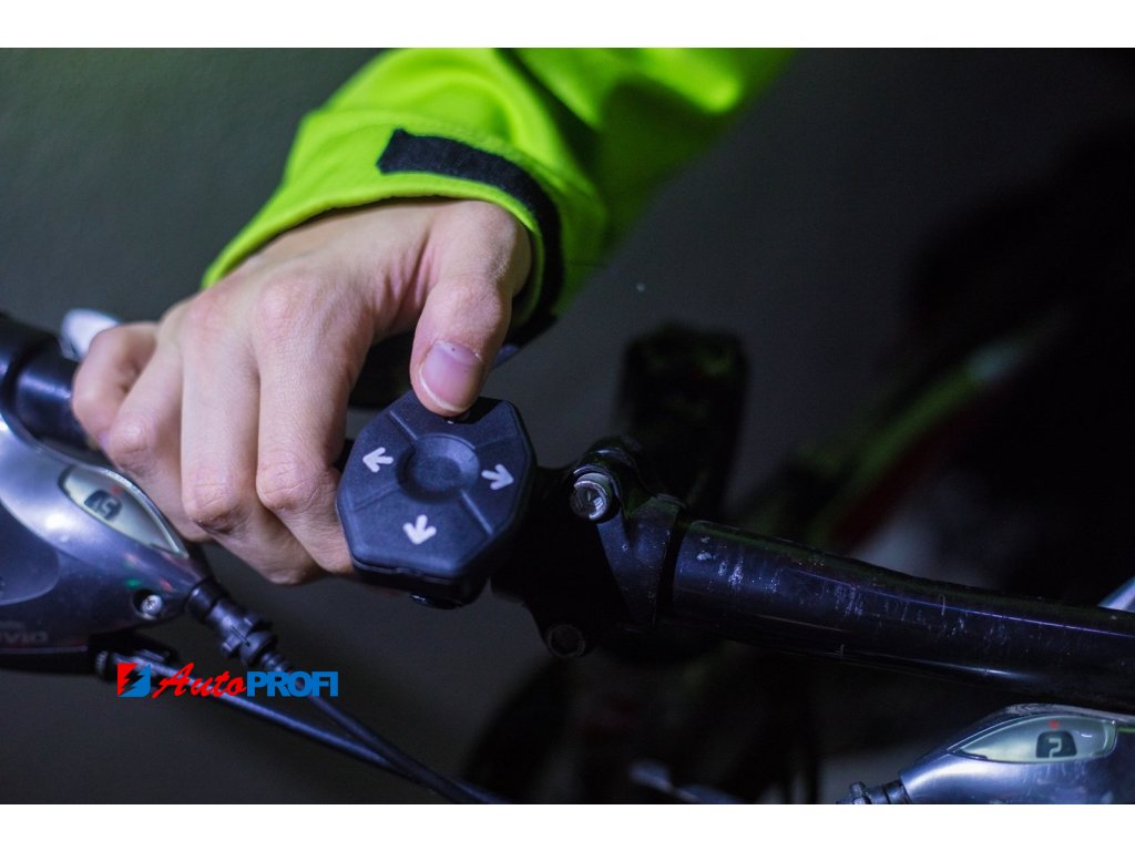 - Bezdrátové vodotěsné (IPX6) dálkové ovládání na řídítka