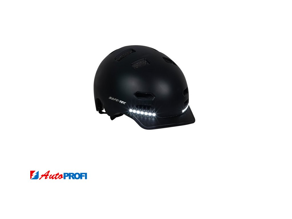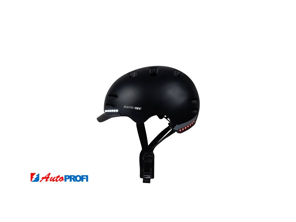 Mezi důležitou výbavu helem Safe-Tec patří LED pásky na přední (bílé světlo) i zadní straně (červené světlo). Moderní LED plní funkci nejen bezpečnostního osvětlení cyklisty (možnost svícení a blikání), ale lze je také využít jako dynamická směrová světla v případě odbočování (oranžové světlo vpředu i vzadu). Ovládání světel se provádí jednoduše pomocí bezdrátového dálkového ovladače, který se snadno upevnění na řídítka díky dodanému držáku. Další bezpečností vychytávkou je funkce pro prudké zabrzdění, kdy jakmile k němu dojde, zadní LED začnou automaticky červeně blikat a upozorní tak jezdce za vámi na možné nebezpečí.