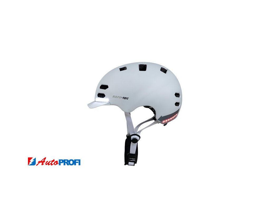 Mezi důležitou výbavu helem Safe-Tec patří LED pásky na přední (bílé světlo) i zadní straně (červené světlo). Moderní LED plní funkci nejen bezpečnostního osvětlení cyklisty (možnost svícení a blikání), ale lze je také využít jako dynamická směrová světla v případě odbočování (oranžové světlo vpředu i vzadu). Ovládání světel se provádí jednoduše pomocí bezdrátového dálkového ovladače, který se snadno upevnění na řídítka díky dodanému držáku. Další bezpečností vychytávkou je funkce pro prudké zabrzdění, kdy jakmile k němu dojde, zadní LED začnou automaticky červeně blikat a upozorní tak jezdce za vámi na možné nebezpečí.
