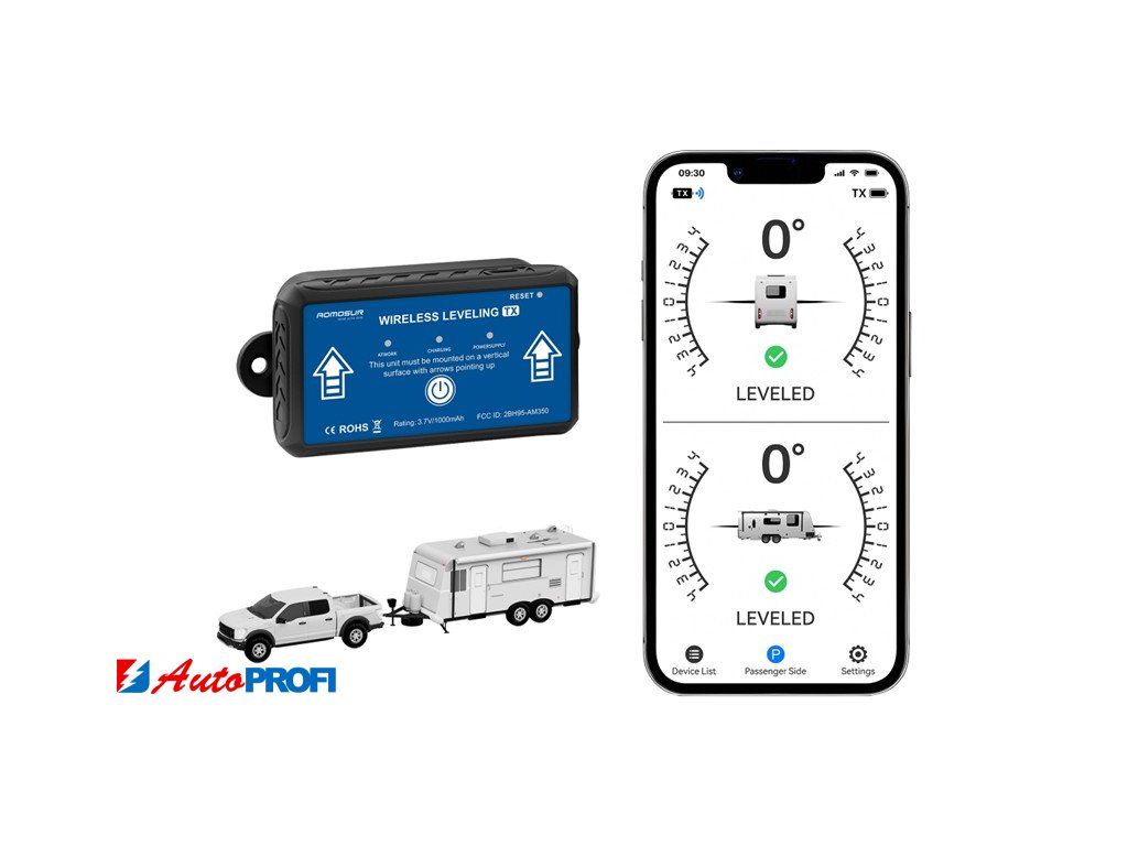 Náklonoměr pro karavany s přenosem do APP (mobilního telefonu), je zařízení určené k měření náklonu vozidla, což usnadňuje jeho přesné vyrovnání na nerovném terénu.