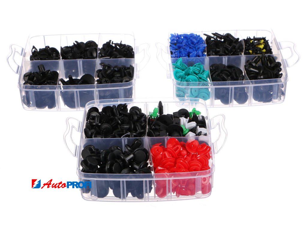 Tato praktická sada obsahuje spony, příchytky a kolíky o 700 kusech pro čalounění vozidel. Jsou ideálním pomocníkem pro všechny profiesionály i domácí kutily při opravě nebo údržbě vozu. Sada je vybavena všemi potřebnými komponenty o různých velikostech a tvarech, čímž se stává univerzální pro širokou škálu vozidel. Všechny komponenty jsou přehledně uspořádány v prakitckém plastovém boxu, což usnadňuje jejich skladování a přepravu.Hlavní výhody: