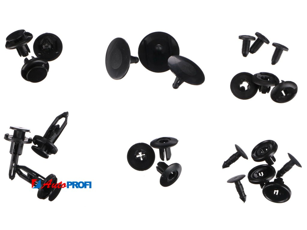 - 20 druhů spon a příchytek pro fixaci nárazníků, blatníků, krytů, čalounění (kufru), sedadel a obložení, uchycení dveřích panelů