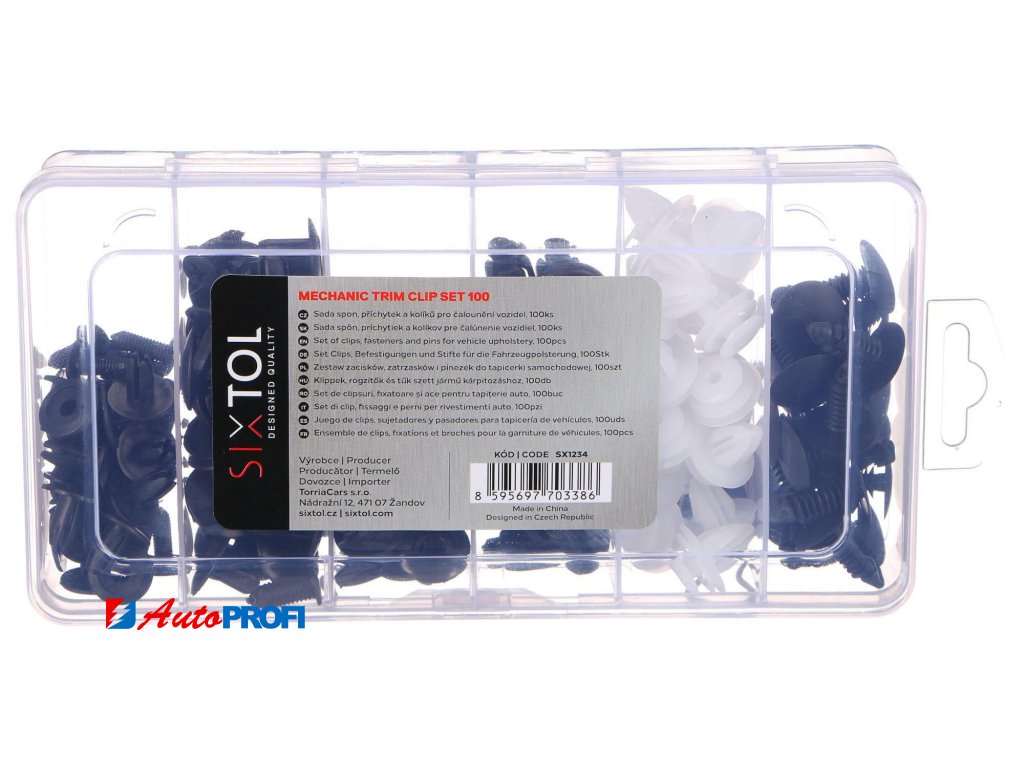 Sada spon, příchytek a kolíků pro čalounění vozidel MECHNIC TRIM CLIP SET 100 SIXTOL
